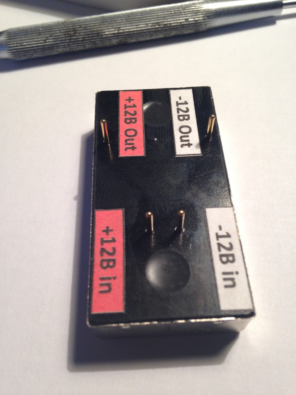 Подготавливаем модуль TRACO — клеем маркировку вводов и выводов