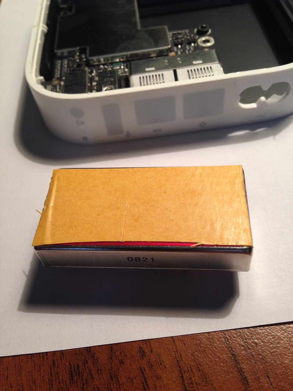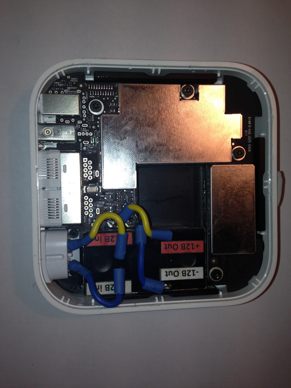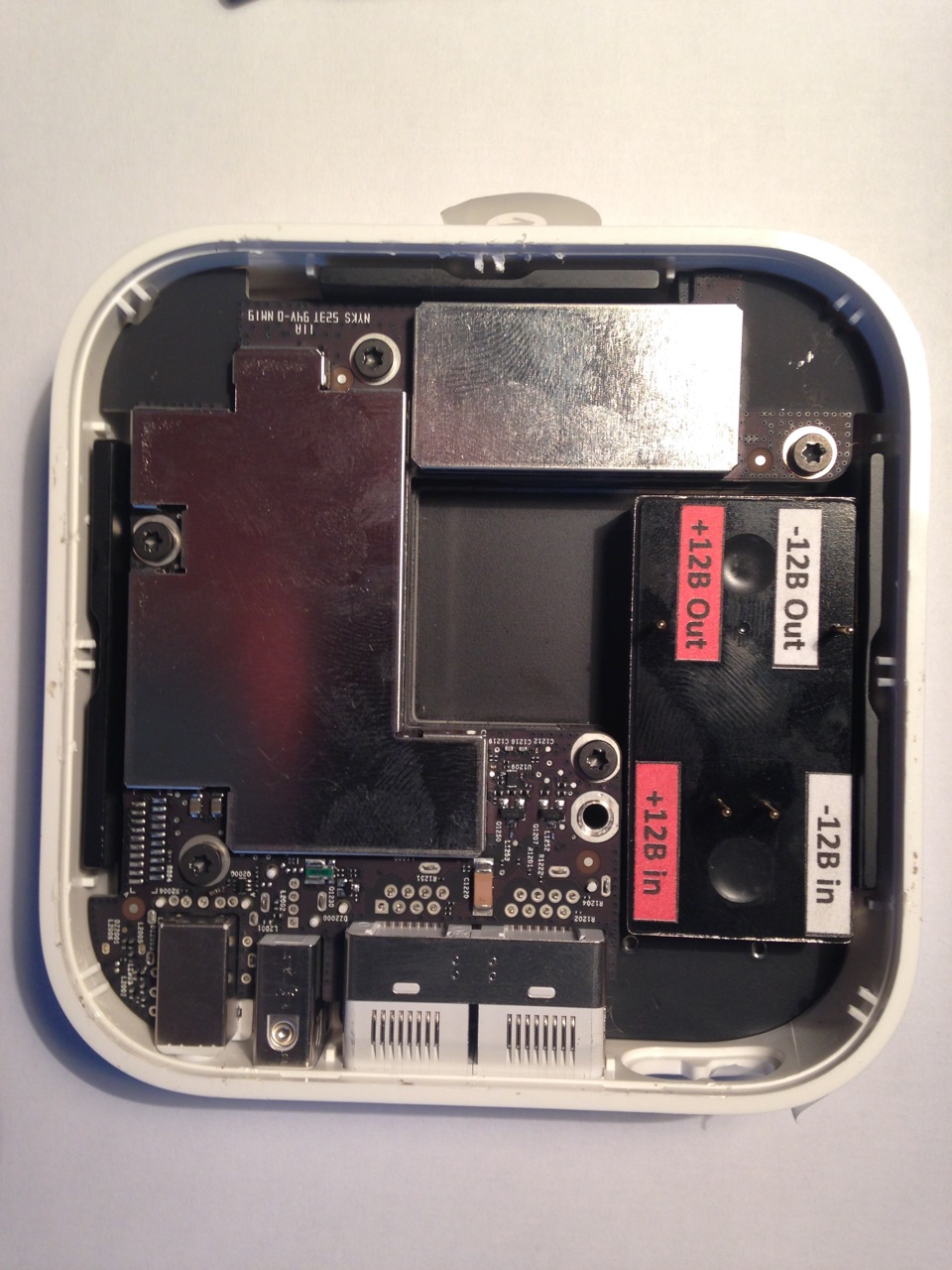 Откручиваем все винты и вынимаем потроха (нужно заменить БП 220в — 12в, на фото справа)