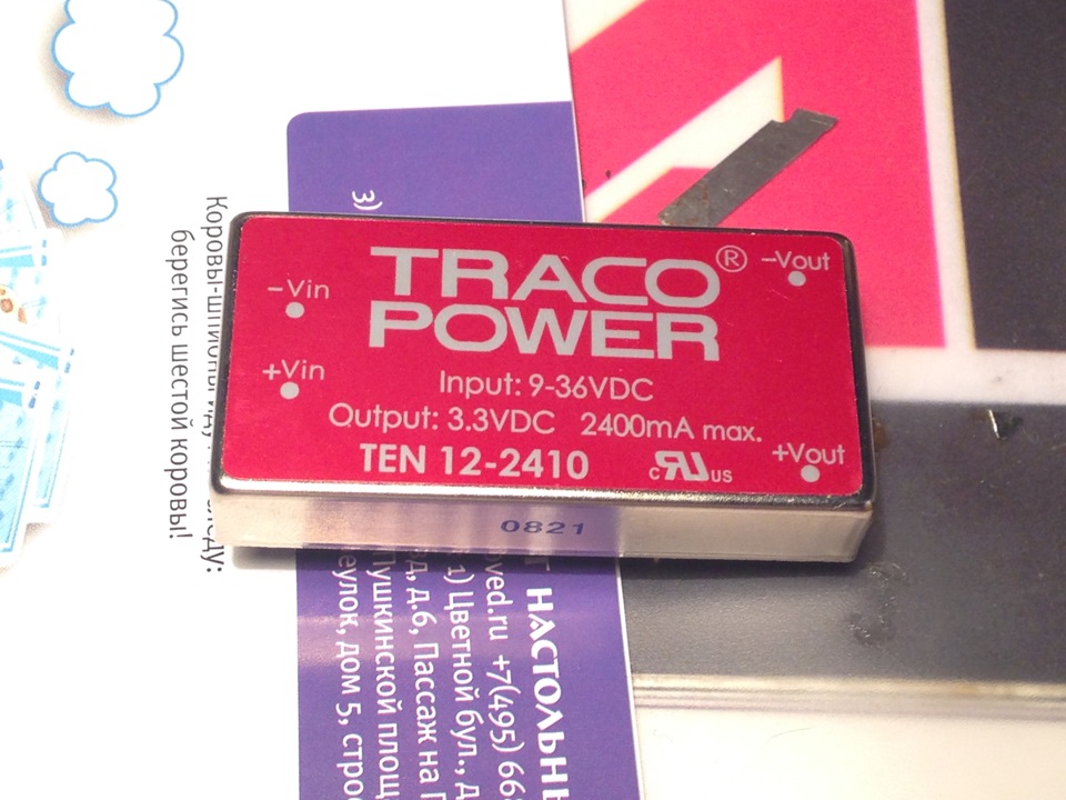 Я выбрал модуль фирмы TRACO модель TEN 12-2410 с допустимым напряжением на входе 9-18В и стабильным выходом 3.3В с током до 2.4Амп.