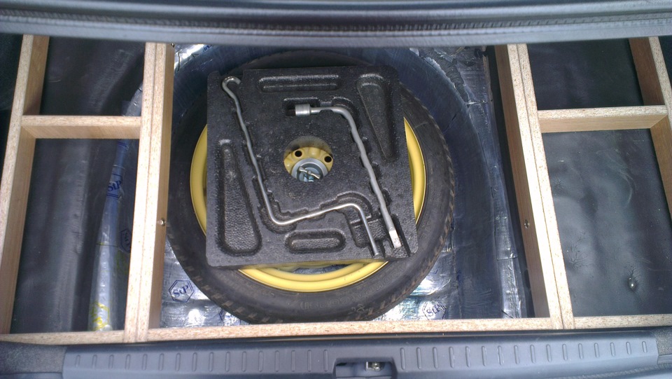 а у меня побудительная причина в том что машина обута в 195/50/15 и запаска шире чем глубина места под нее )) так что родной фальш пол лежит в основном на ней