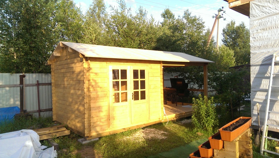 В качестве критики:1. а не мешает ли скопление дыма и копоти от барбекю под коньком. 2. всеже цокольную часть лучше чем-нибудь закрыть от проростания травы и соответственно скорейшего гниения лаг и досок пола. А в целом МОЛОДЦЫ! Очень здорово, быстро и красочно