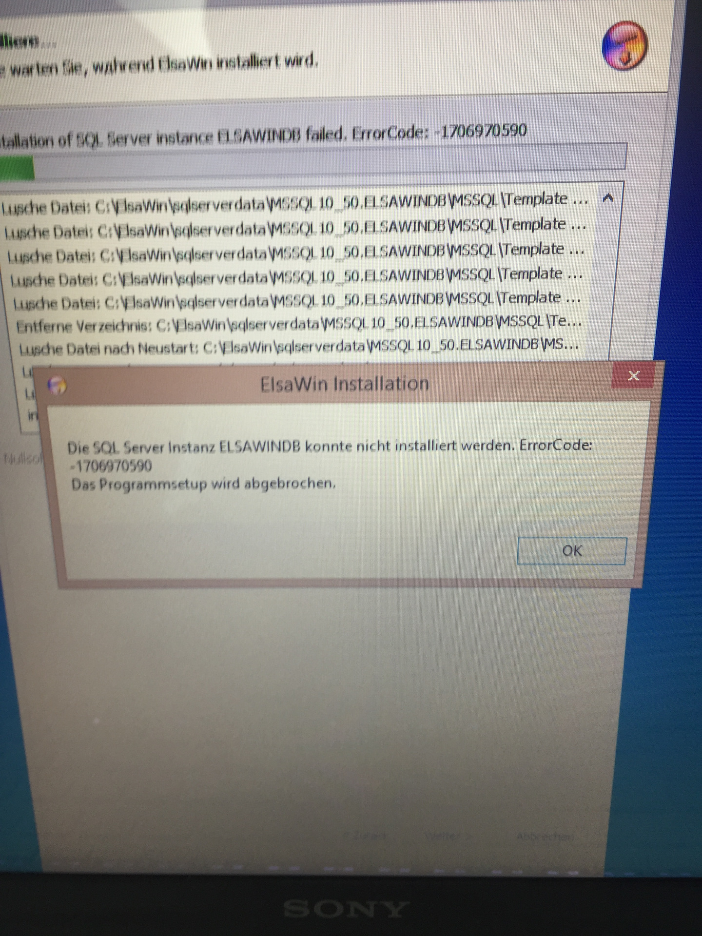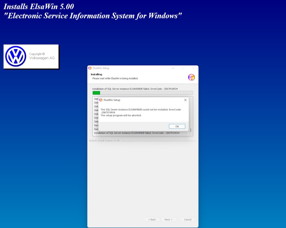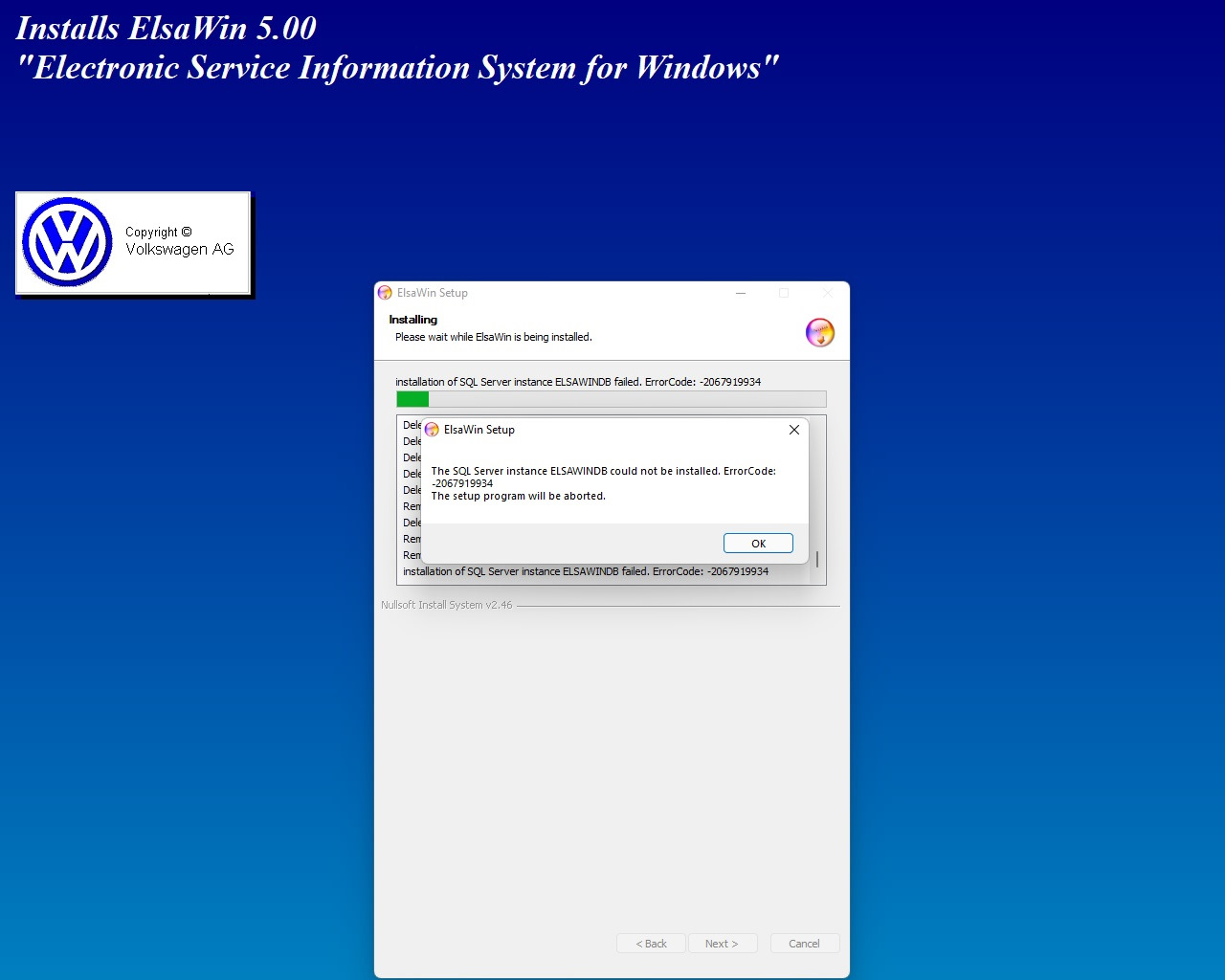 SQL Server ELSAWINDB не может установить Error Code :1706970590