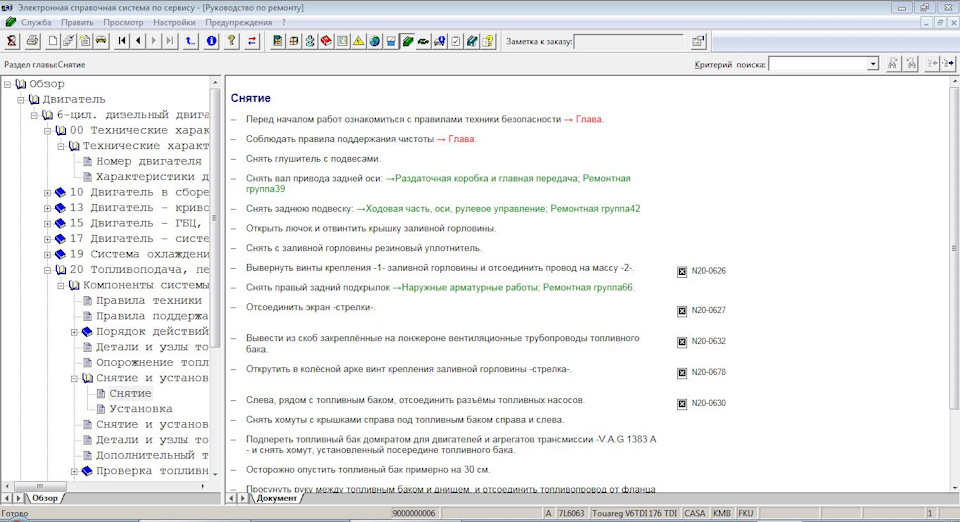 ну а далее все просто, выбираем интересующий нас пункт, примером будет "Руководство по ремонту" нажимаем и видим вот такое окно, я там уже все выбрал (аналогично будет для других пунктов):