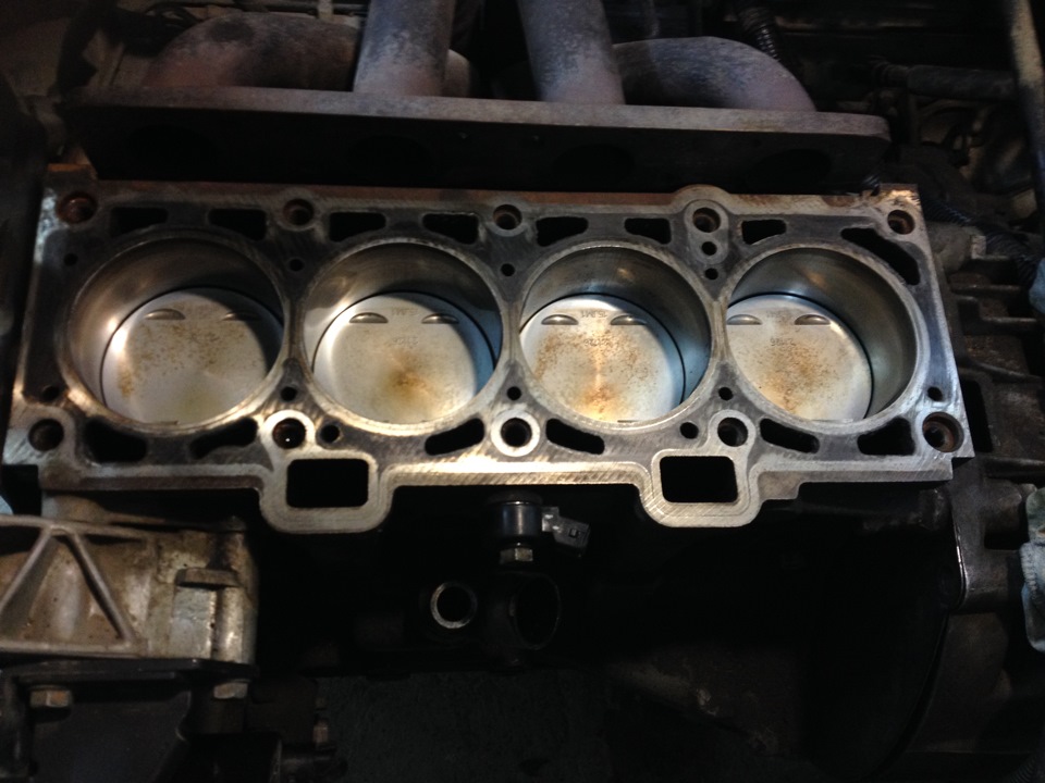 Плоскость блока не пострадала и шлифовать плоскость идеально ровную без раковин и коррозии не имеет смысла, она была просто почищена и подготовлена, плоскость ГБЦ шлифовалась 0,08 из за того что во время работ с ГБЦ зацепили в паре мест её — таким образом степень сжатия на месте, прокладка легла из под головы не сечёт, ОЖ и масло на месте по уровню.