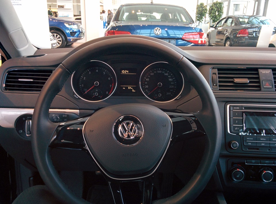 Салон мне понравился больше. Смотрим сами. Машины в базовой комплектации, хрома нет. Все минимально, аскетично. Шкалы получили отдельные колодцы, руль который концерн потихоньку обновляет на всех новых моделях, тем самым повзрослев и добавив солидности.