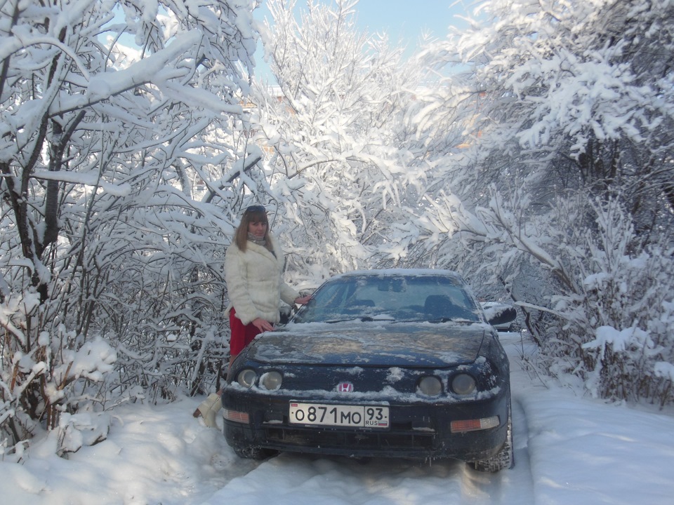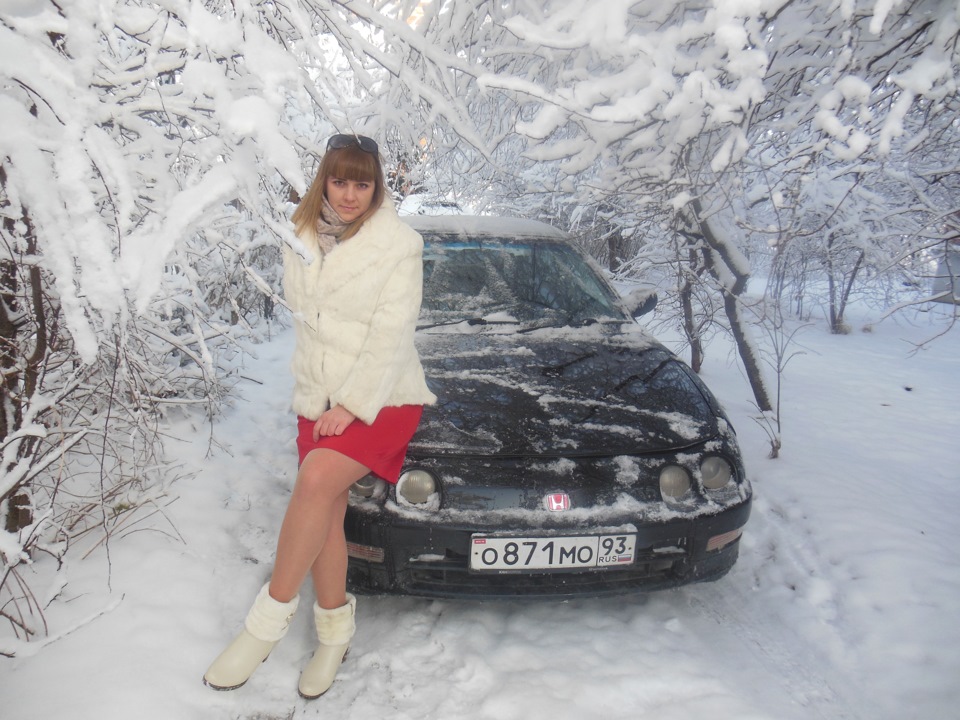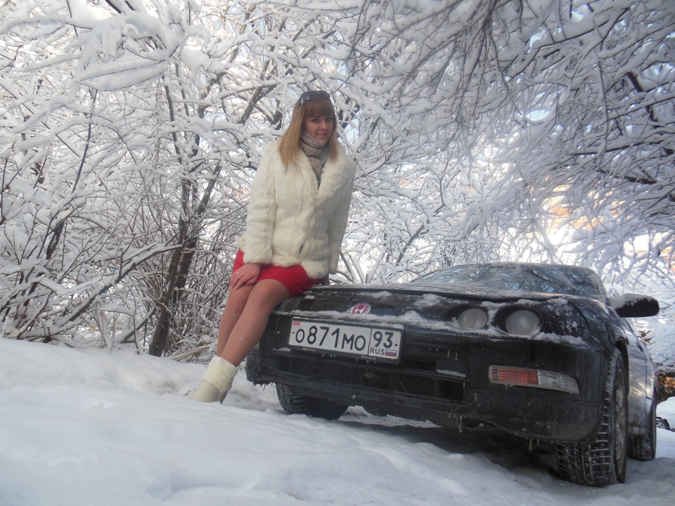 Девушка красивая, снежок, машинка.