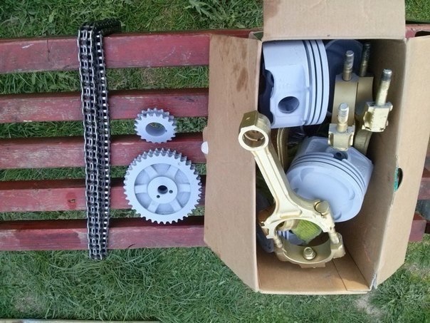 Блок Газ-53 V8 поршня и шатуны с него же, цепь и звёзды с классики)))))прикольно