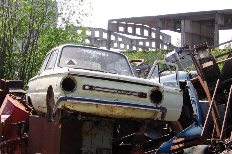 В конце 90-х годов очень много было брошенных разбитых и разобранных запорожцев и старых москвичей. Встретить их можно было где угодно, за домом, в овраге, за гаражами, на берегу реки и даже торчавшими из реки. Наверное во многих городах было одно и то же. В начале 2000-х все эти машины резко пропали, наверное кто то подсуетился и сдал их на металлолом. Причём машины пропали даже из самых труднодоступных мест (из оврагов и болот около реки).