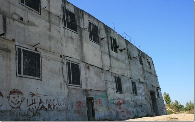 У подножия высоты 495 — развалины еще одного здания, входившего в комплекс ЗКП.Этот жилой корпус, а так же столовую на 250 мест, овощехранилище, очистные сооружения, подземный водозабор, линии электропередач и трансформаторные подстанции построили для строителей, которые возводили бункер.
