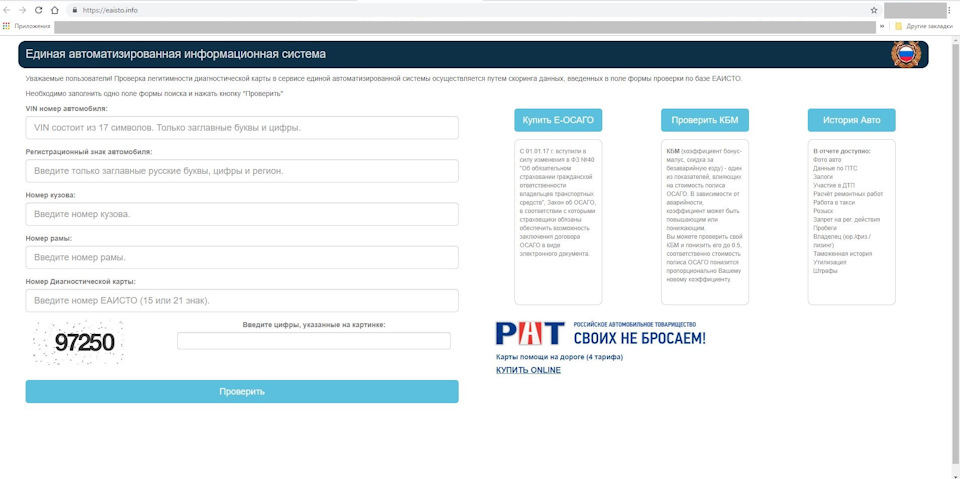 проверьте свою карту в еаисто kbm-osago.online/eaisto