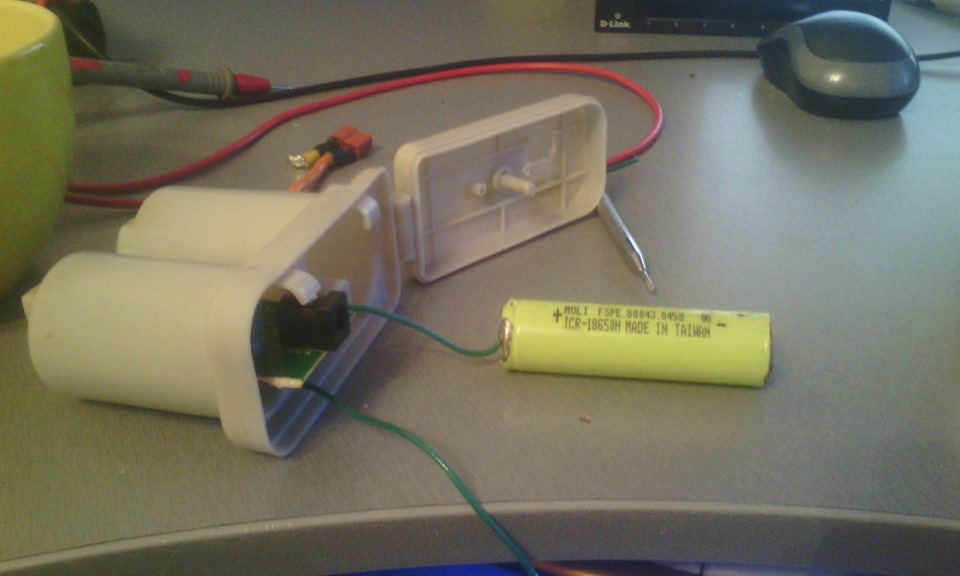 Задолбали меня батарейки, которые раз в месяц помирают, причем в самый не подходящий момент) Так же валялась у меня дохлая батарейка (18650) от старого ноута.