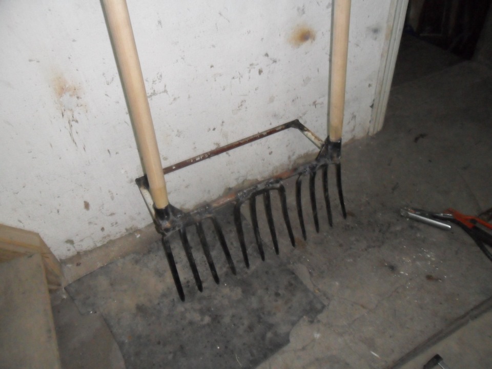 В прошлом году друг нашёл в интернете ролик про самодельную копалку из 3-х садовых вил и попросил сделать ему такую же.