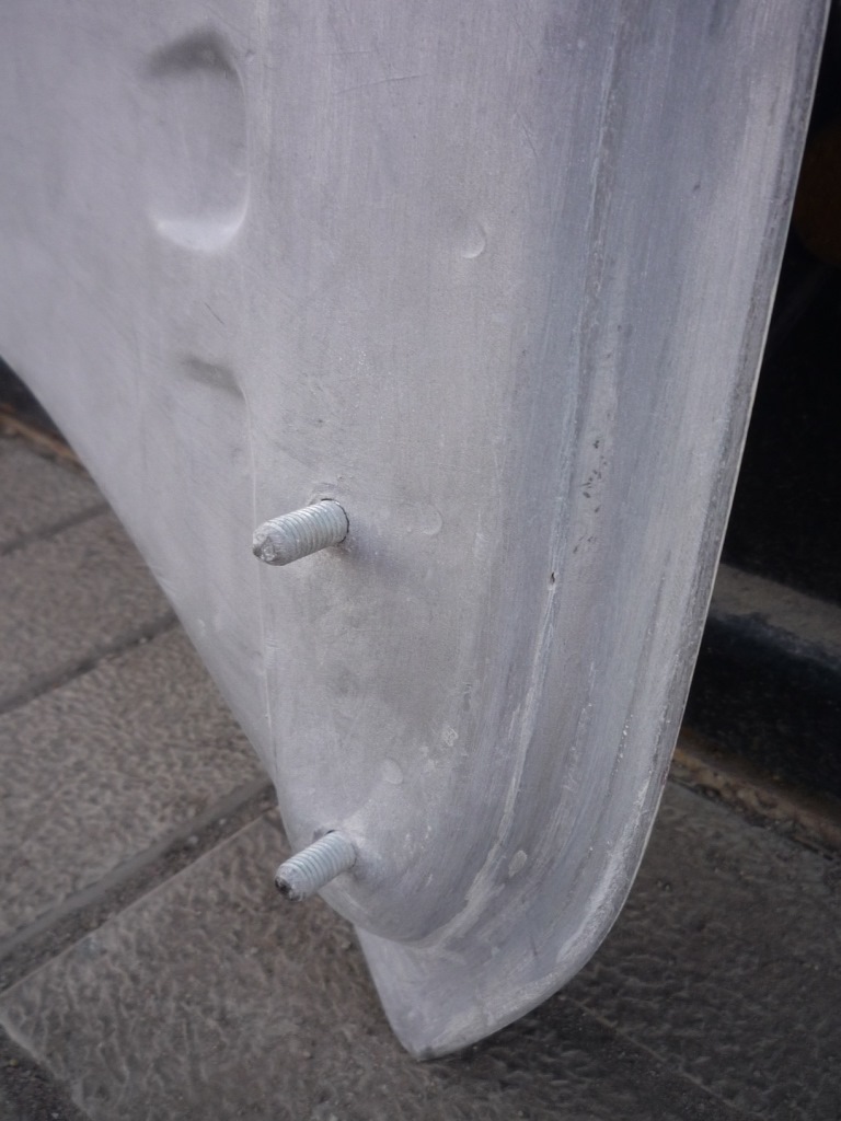 перед тем как склеить две половины капота…мы замораживаем к усилителю шпильки…свариваем их между собой…чтобы они не вывалились…