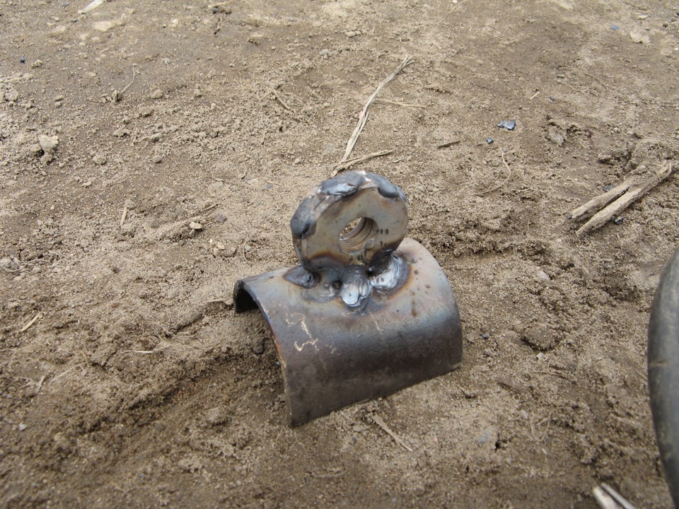 затем взял купленный сгон, отрезал от него резьбовую часть, разрезал его пополам вдоль, и приварил к одной из частей сложенные 3-и шайбы