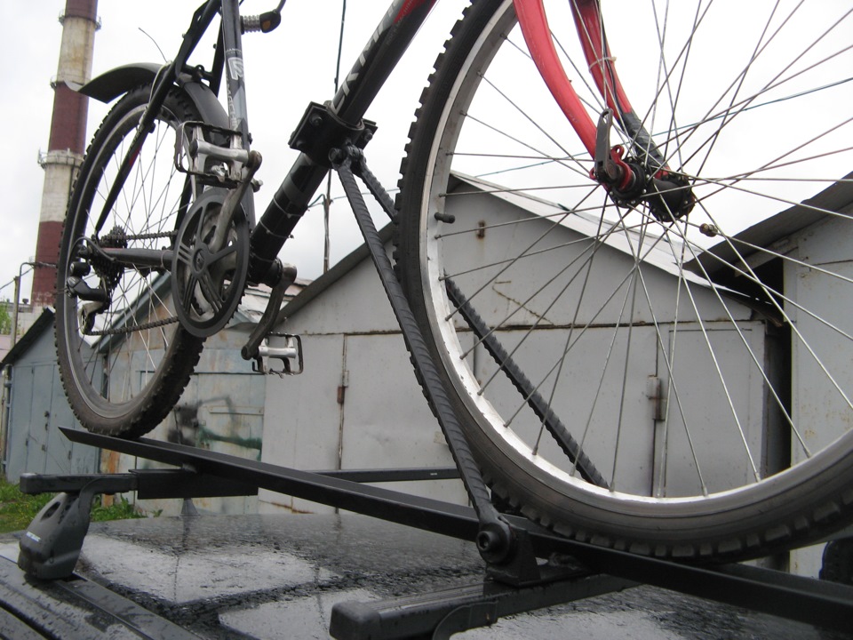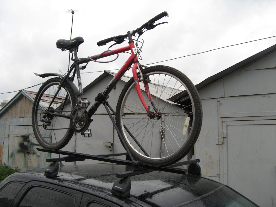 второй велик точно встанет, этот занимает даже меньше чем половину крыши (при повернутом руле). Крепление чего в одной точке? Сами дуги крепятся за штатные места, а кним мое крепление 4-я болтами, 2-а спереди и два сзади. Самому очень нехотелось сверлить дуги, но ничего другого не придумал, хотел сначала чтото типа струбцин сделать, но решил что это будет не надежно.