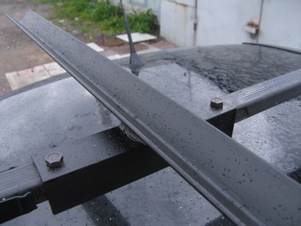 что касается крепления к багажнику, на мой взгляд сверление в поперечинах не есть правильное решение, надо было побумать про захваты.