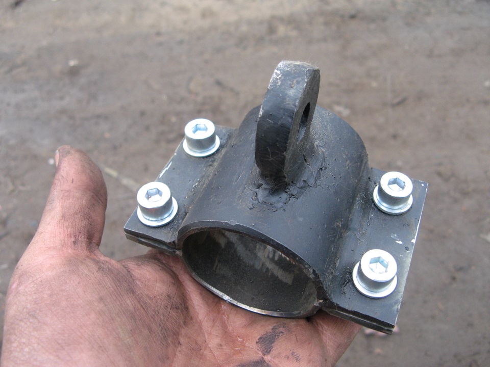 к половинкам трубы наварил уши, и с одной стороны гайки М8