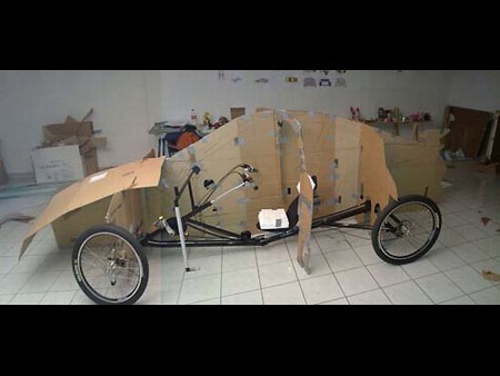Рукастый парень. И смелый. Я бы на картонке побоялся на дорогу суваться.