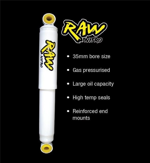 Raw 4x4 – Nitro Max – это довольно крупный амортизатор. Диаметр цилиндра у него 41 мм, всего корпуса 70 мм. Этот крупный амортизатор легко справился с грубой трассой бездорожья. Кроме внушительных размеров у Raw 4x4 есть уникальный газовый элемент внутри внешнего корпуса, который помогает справляться с трудностями долгой езды по бездорожью. Крупный амортизатор идеально вписался в переднюю часть подвески, а по сторонам задел проводку АБС.