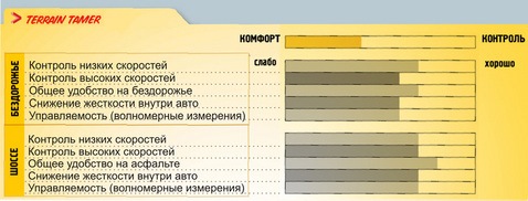 Хотя амортизаторы Terrain Tamer — одни из более мягких в этом испытании, езда с ними довольно комфортна. В целом, это очень экономичный вариант хорошего качества. Оказавшись самым приемлемой по цене маркой, они хорошо зарекомендовали себя среди других более дорогих амортизаторов, справившись как с полевыми испытаниями, так и с тестами в контролируемой среде.