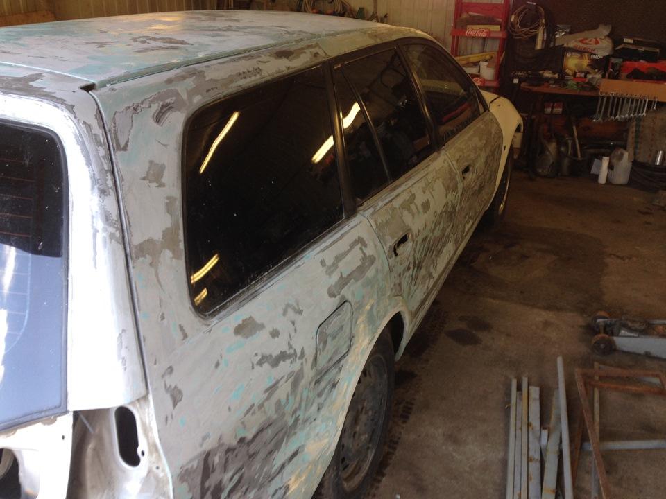 Проще взять шлифмашинку (шлифмашинку, а не болгарку) с пылесосом поставить круг с 80-м абразивом и ободрать всю машину за один день, а то и меньше.