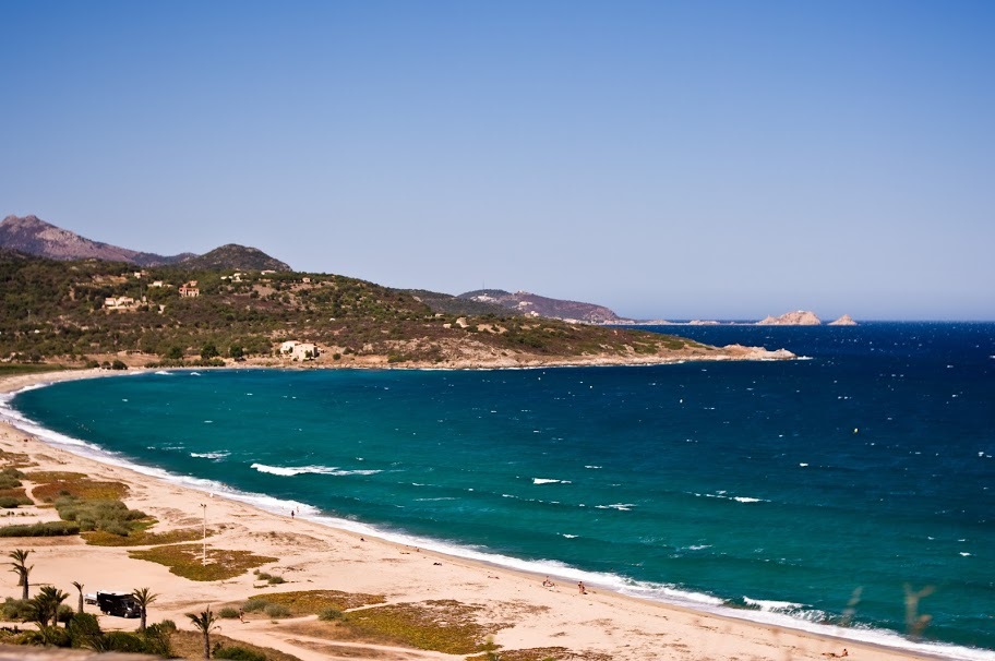 От Сен-Флорана до Л’иль-Русса дорога проложена вдали от побережья, а в сторону моря простирается каменная пустыня. Там, у синей полоски воды шикарнейшие пляжи, но попасть на них будет стоить денег, в виде билетов на кораблик или стоптанных подошв. На заднем плане западное побережбе Cap Corse.
