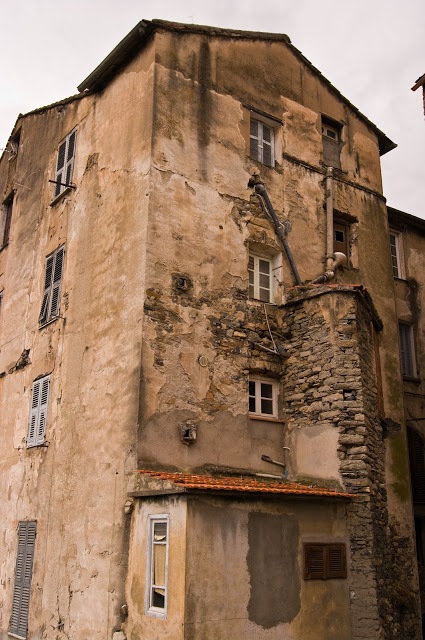 Более привычный ракурс в изобилии во всех гидах.Все понравилось, хороший городок, и как выяснилось есть куда более удобный подъезд, не нужно форсировать высоту. Можно побродить по немногочисленным улочкам, закупиться сувенирами, в числе коих керамический изделия местной мастерской, покушать традиционные корсиканские блюда, послушать уличных музыкантов. Я же лишь в дополнение к дому в Бастии (в предыдущих частях), который с кишками наружу, приложу вот такую фотку :)