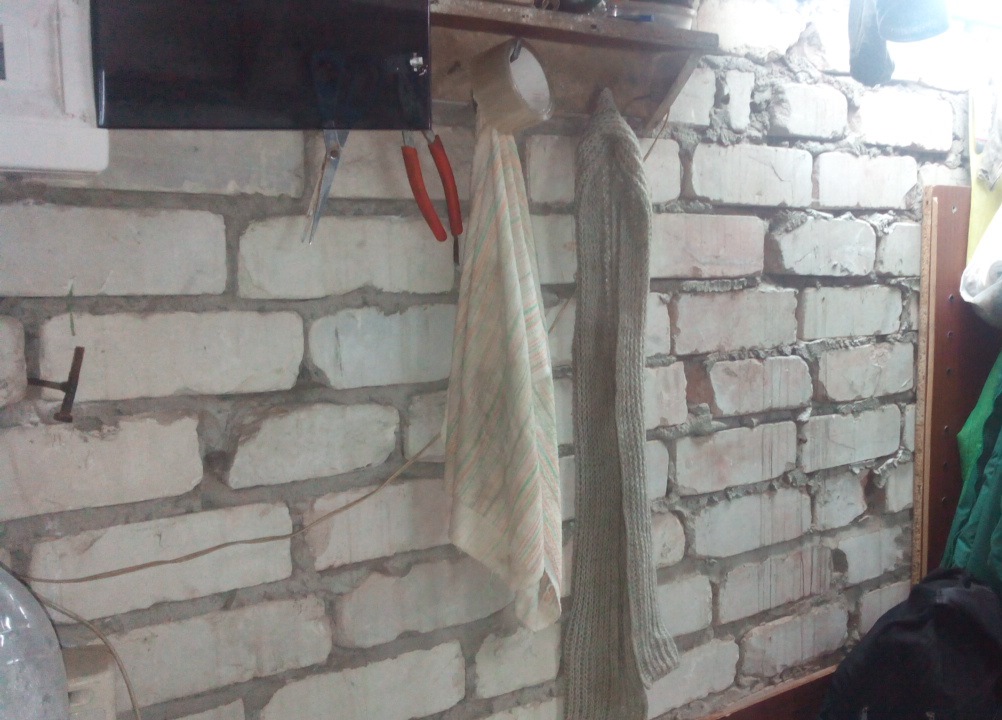 Совсем нет утеплителя на стене и на потолке, и пол бетонка, ворота тоже не утеплял.