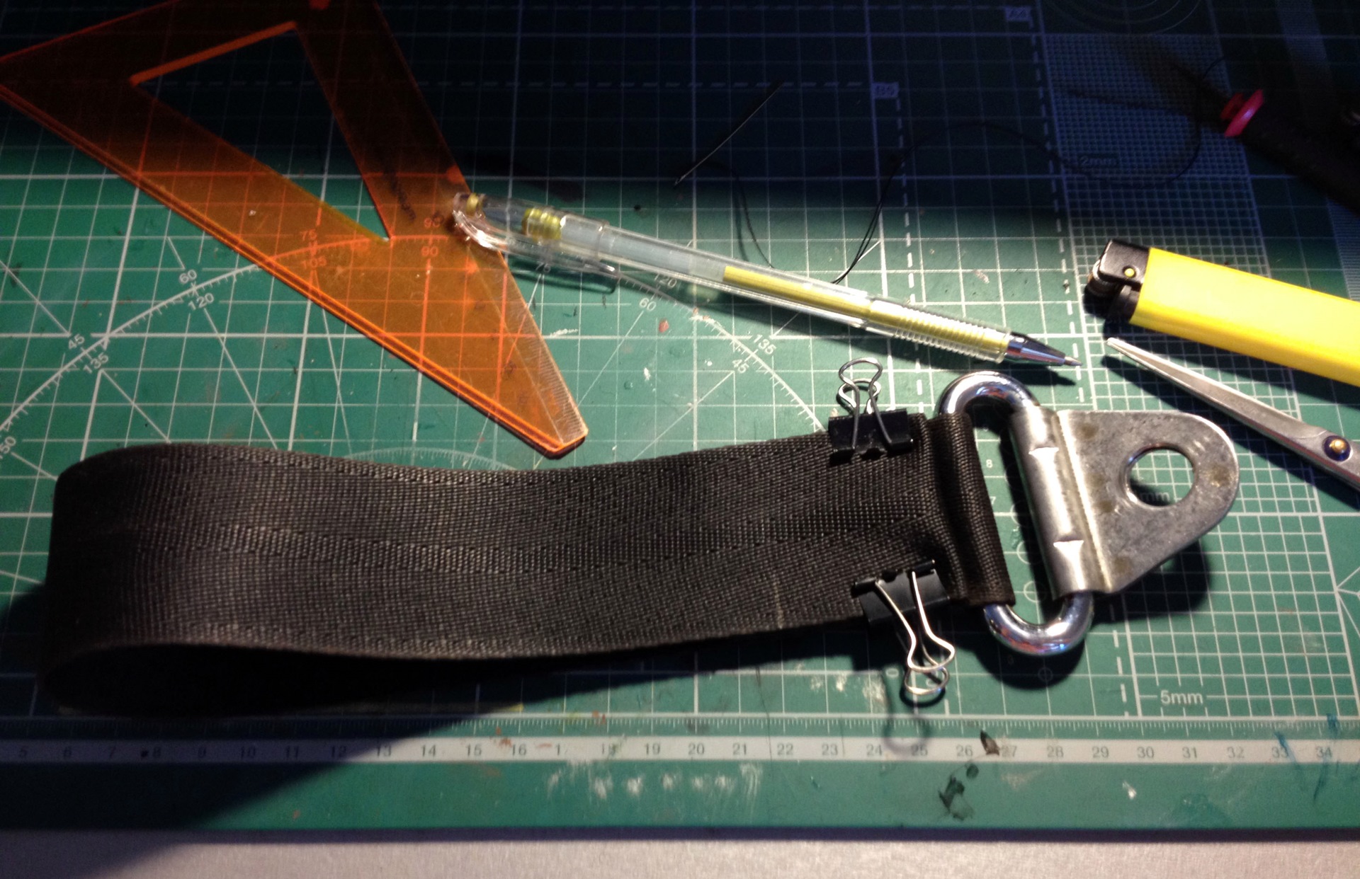 Порезав ремень и опалив края зажигалкой, наметил нужную длину