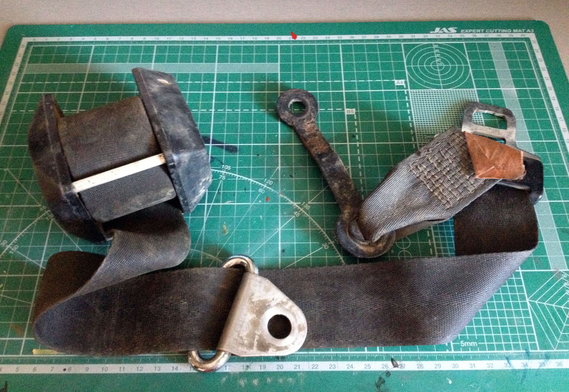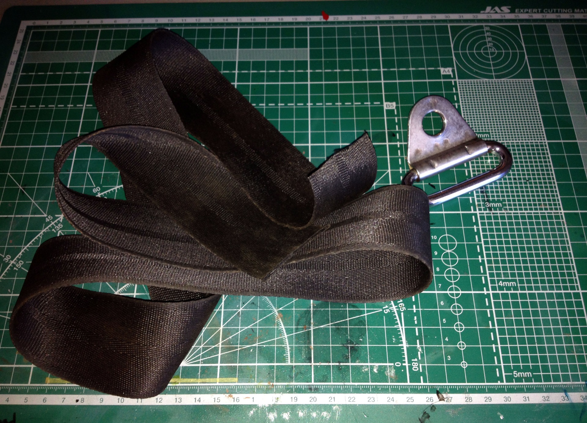 Принеся ремень домой я его разобрал и большую часть выкинул, оставив только сам ремень и ухо крепления к кузову