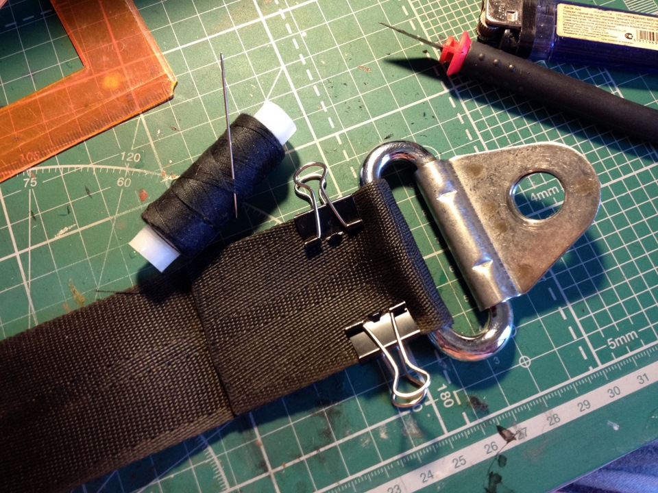 Загнув второй конец ремня я его также предварительно прошил для удобства. Длина буксировочной петли у меня соответствует аналогам 280мм, но ее можно сделать любого размера, здесь все зависит от вашей фантазии и места крепления
