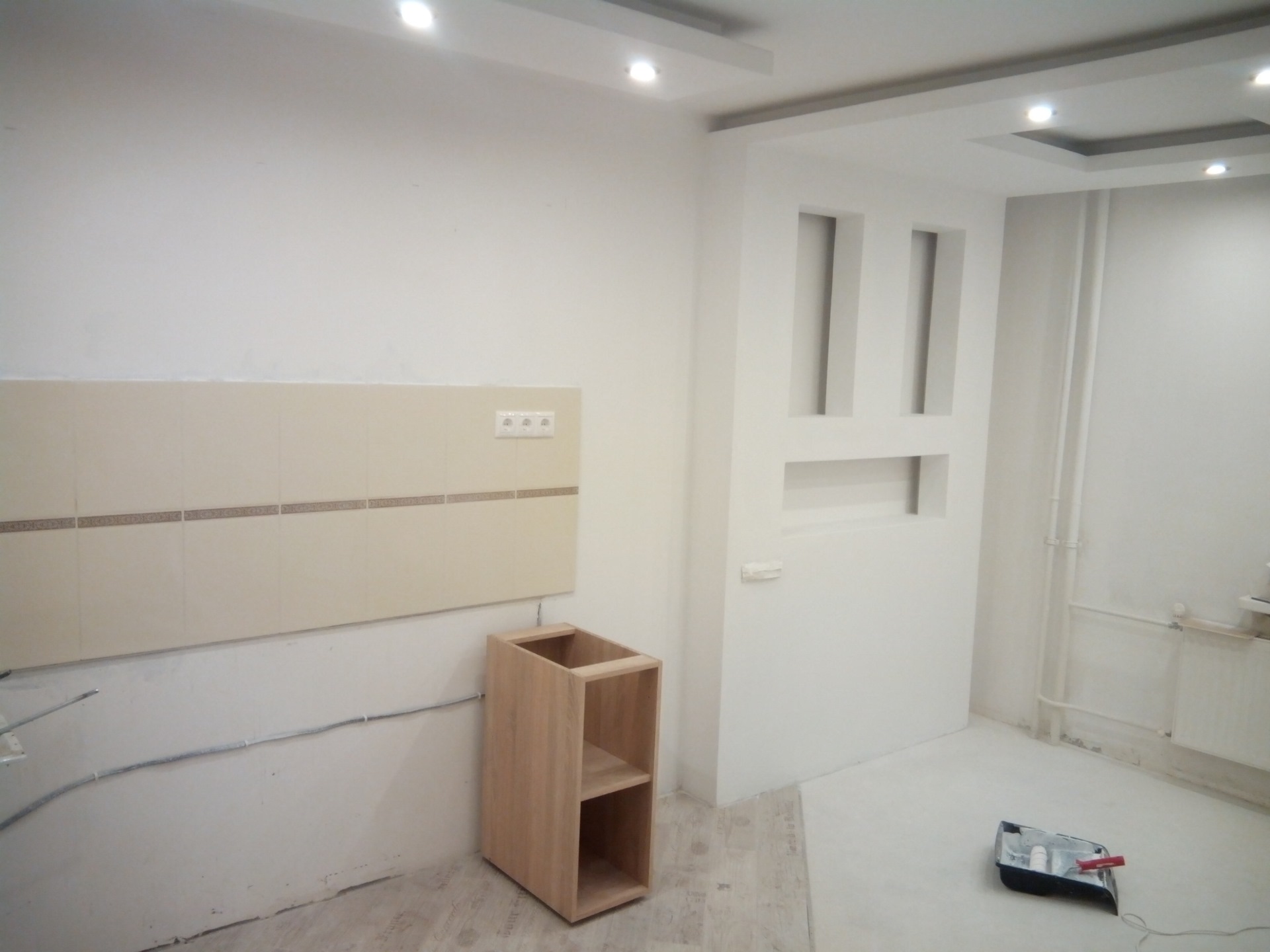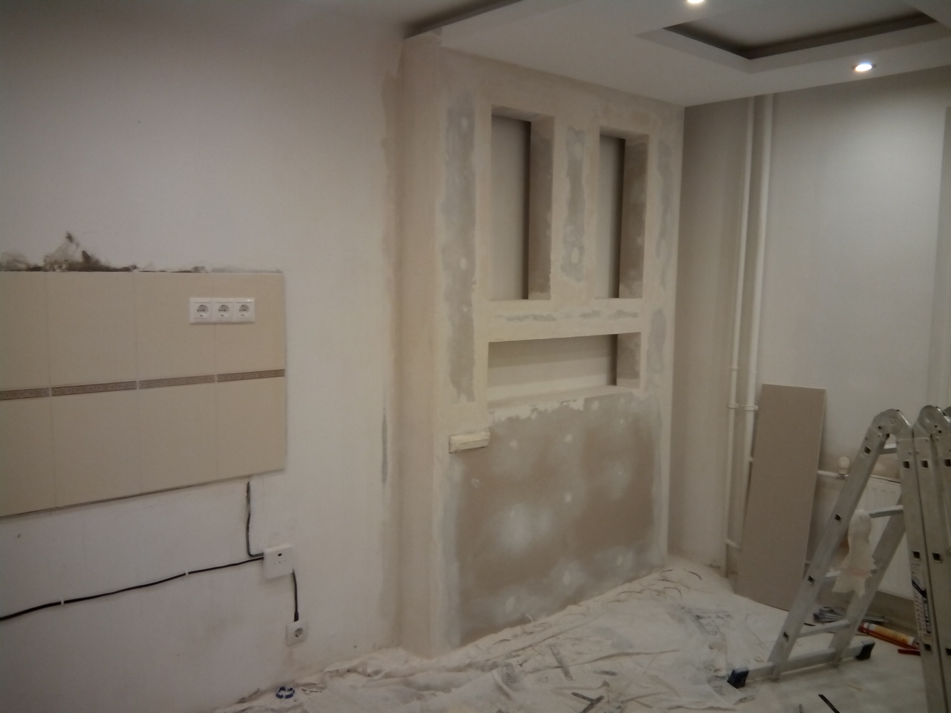 дальше монтаж электропроводки и доделка настенной конструкции с нишами