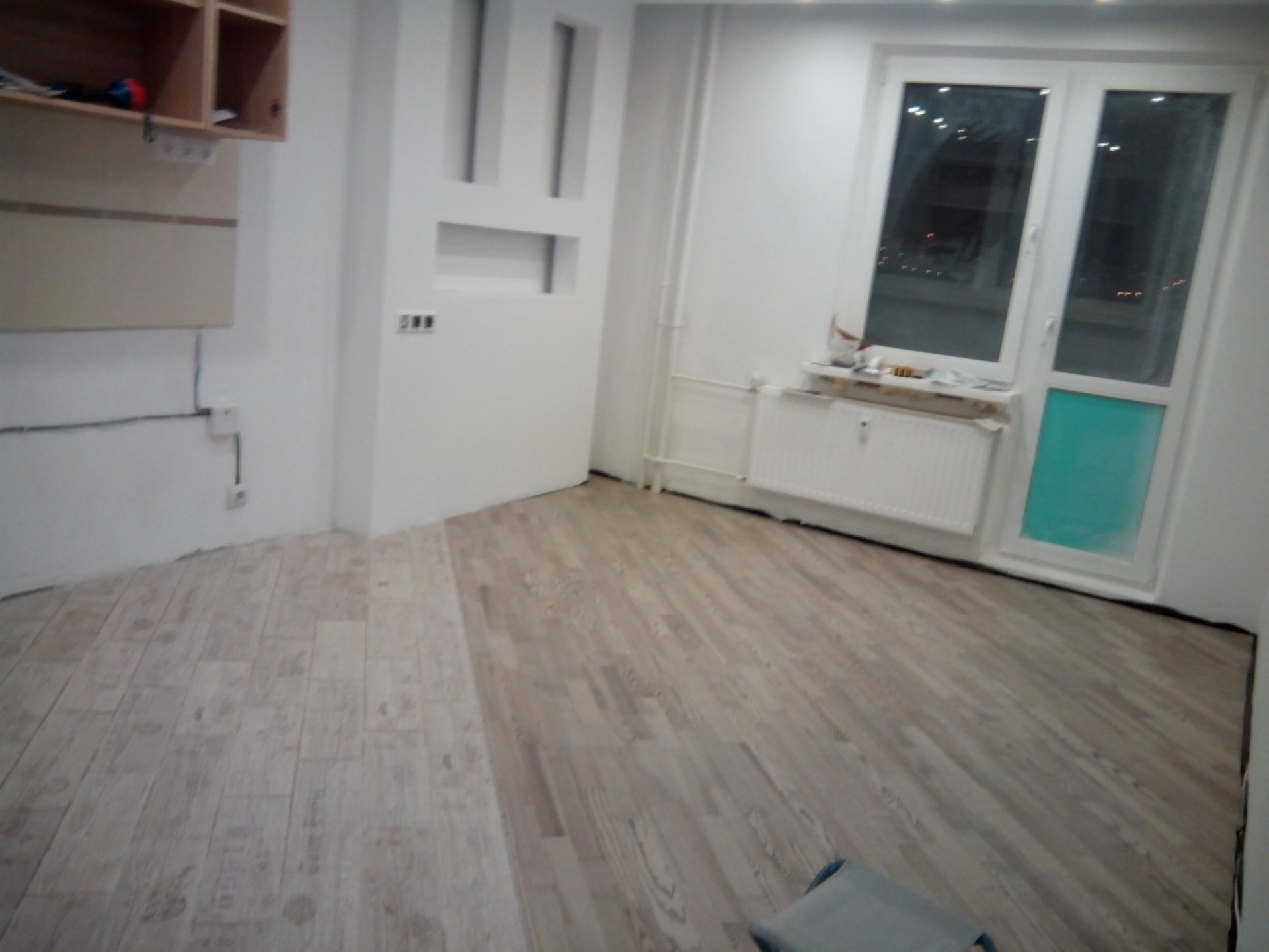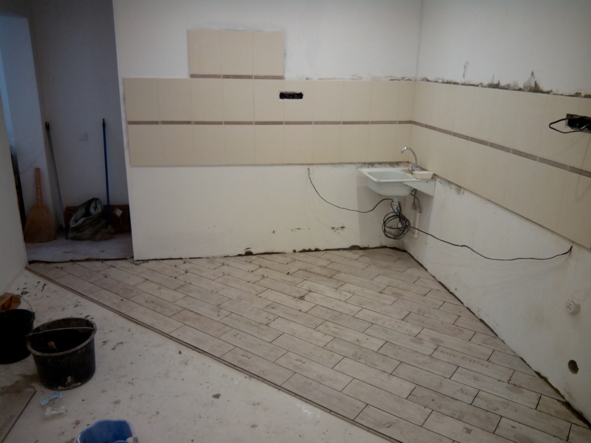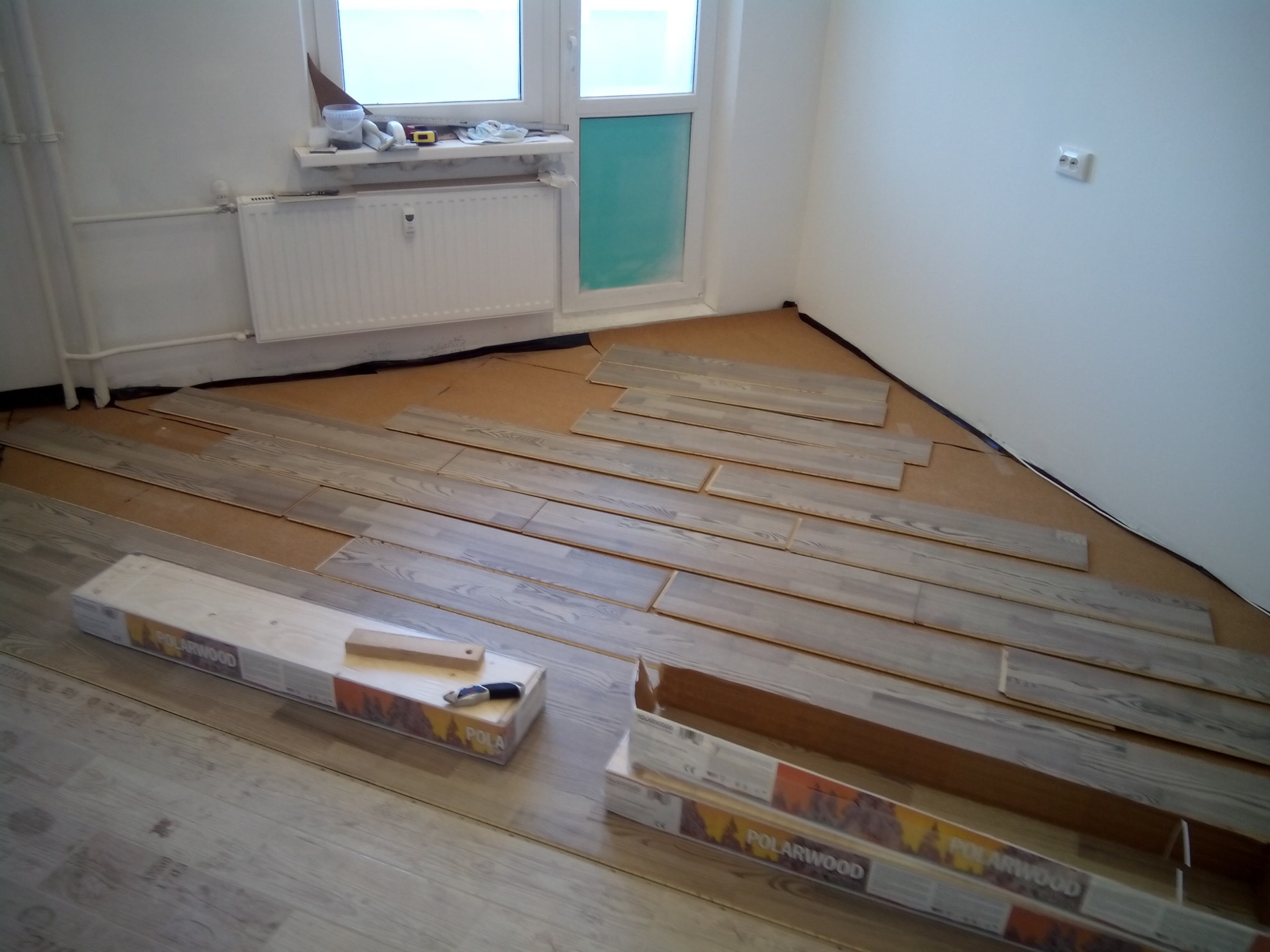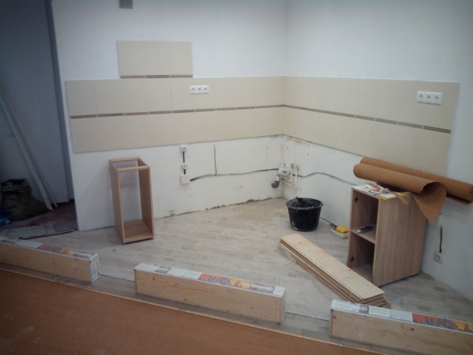 пол подсох для хождения, можно было выкладывать фартук