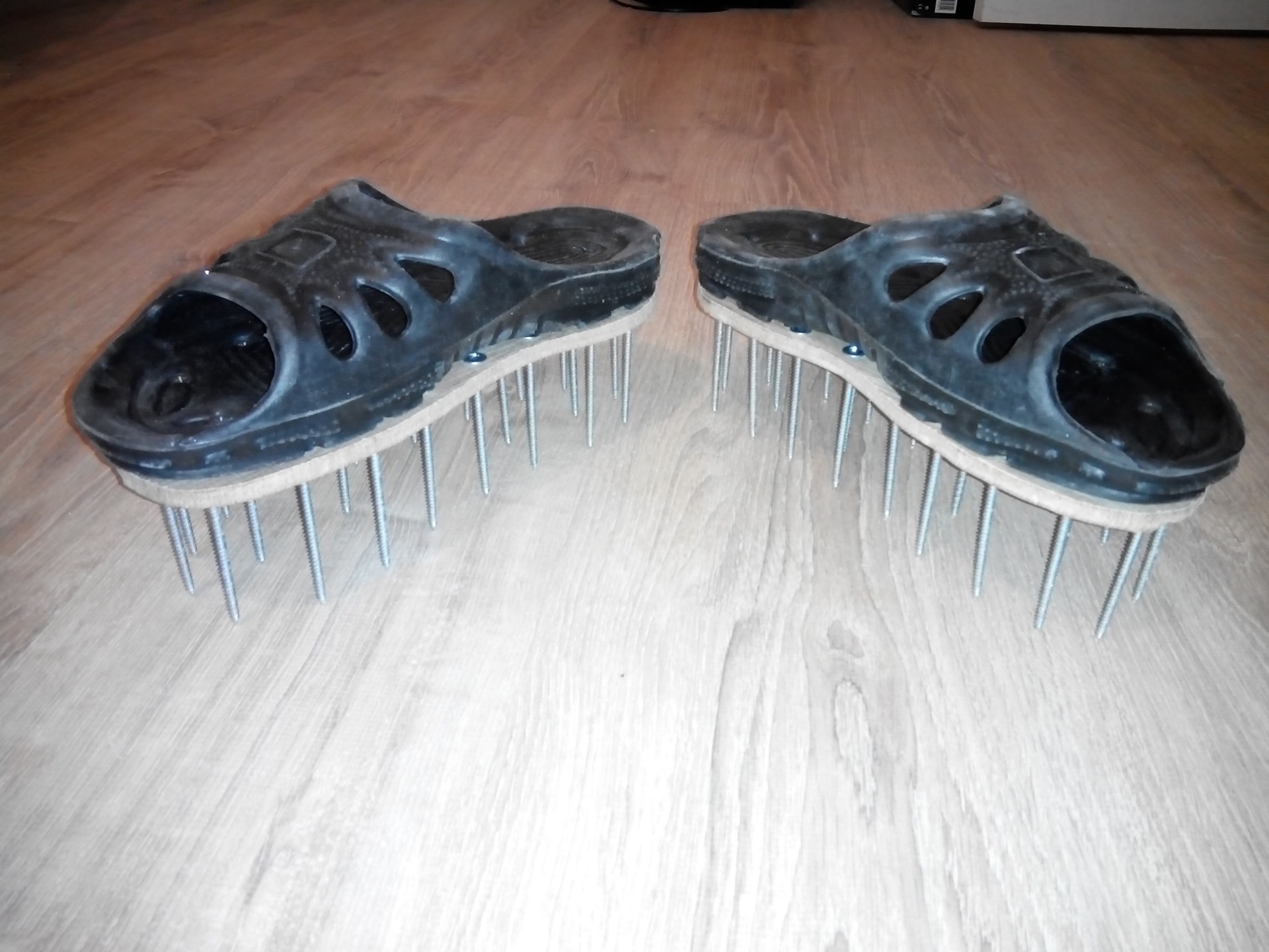 Девайс а-ля тапочки зачетный!Только вот с приклейкой ламината погорячились…нельзя мертво клеить плавающие полы…