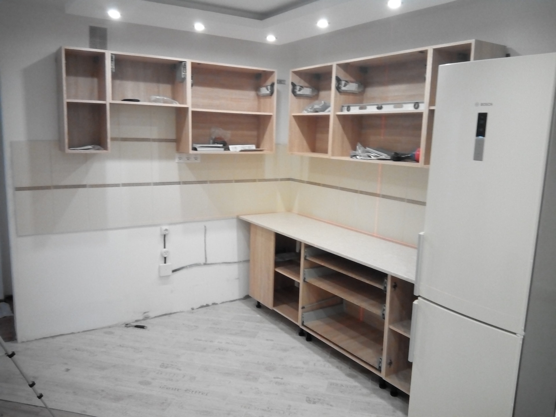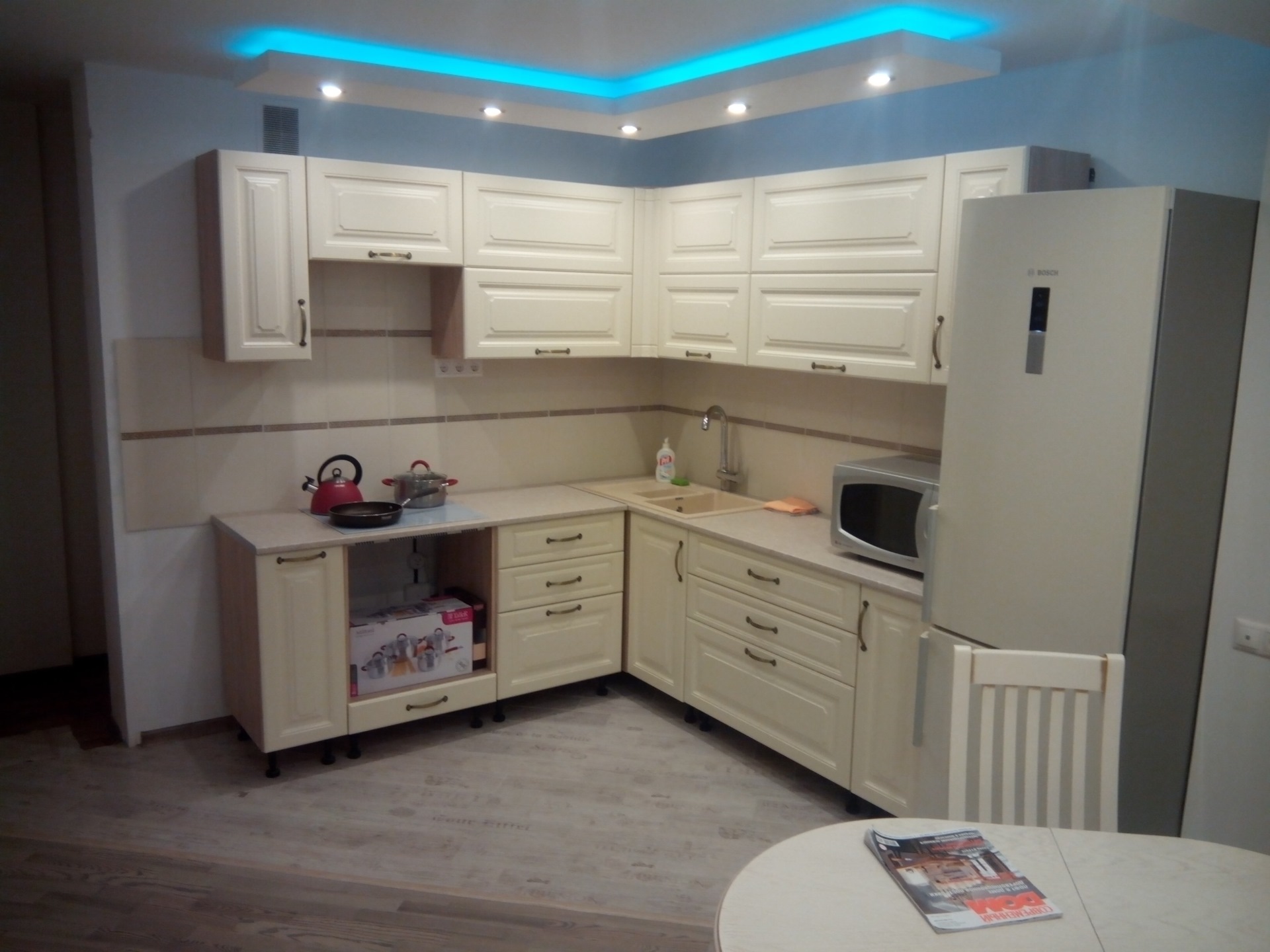 конечно кое чего не хватает: штор, духовки, вытяжки и двери, но уже приятно пить чай и не только:)