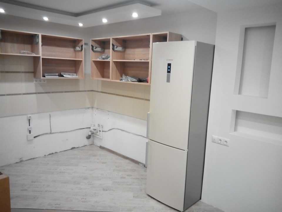 классно красиво и добротно но не без косяков. три авентоса это жир и в итоге не хватило денег на кошерные ножки в кухне ( — я бы за эти же деньги оставил два а разницу с третьего потратил на нормальные хромированные ноги или закрыл порнуху цоколем. плитка на рабочей зоне как у вас не совсем практично из за большого количества толстых швов которые будут засираться и портить вид — отличное отработанное решение керамогранит 600х600 с минимальными(встык) швами1мм. и чтобы не было видно шелей между шкафчиками и стеной ложатся полоски из плитки 5см на высоту шкафчика.