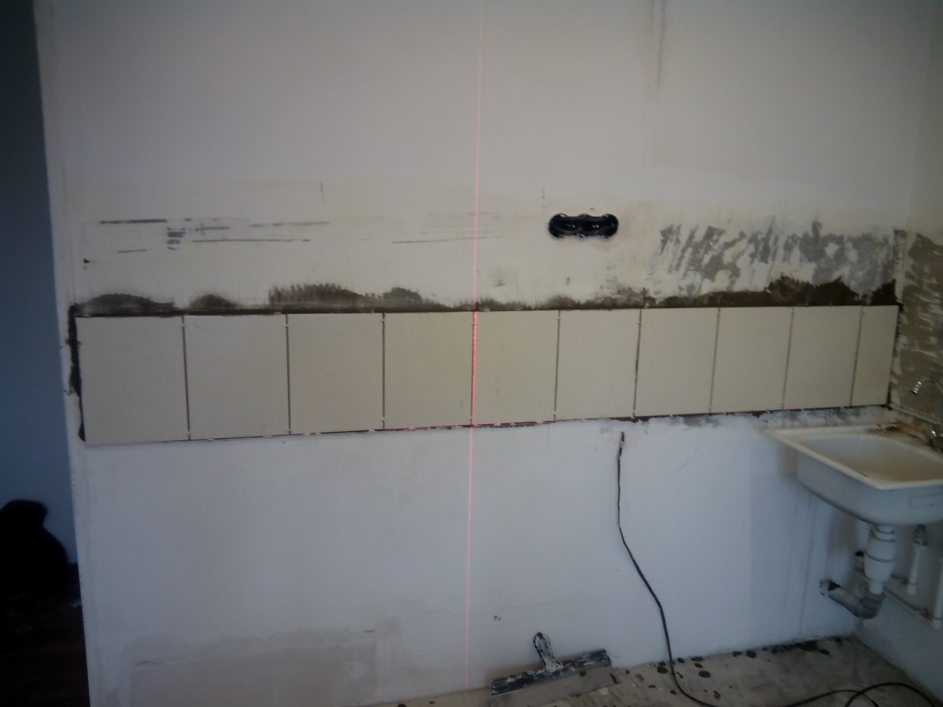 долго думал как извернуться с укладкой плитки, решил положить от середины по диагонали
