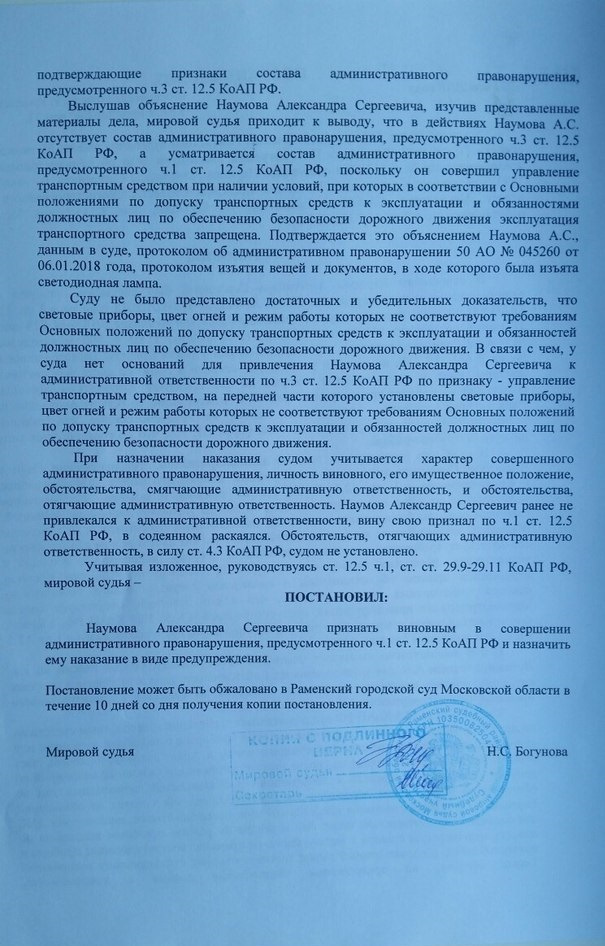 Чем дело кончится мне и так было понятно. Толк в том что, надо хотя бы иногда пытаться защитить свои права! (в данном случае имеется в виду в прямом и переносном смысле!🤣) Я хотя бы попытался доказать, что это не нарушение! И это действительно не нарушение! Это ст 12.5 п.1. А если быть таким вот додиком и вечером после составления протокола, прийти домой, открыть бутылочку пивка и под пивко нагуглить эту сраную ссылку, после чего принять решение из серии