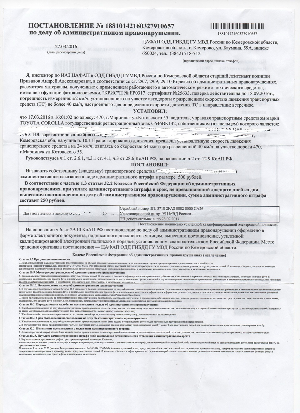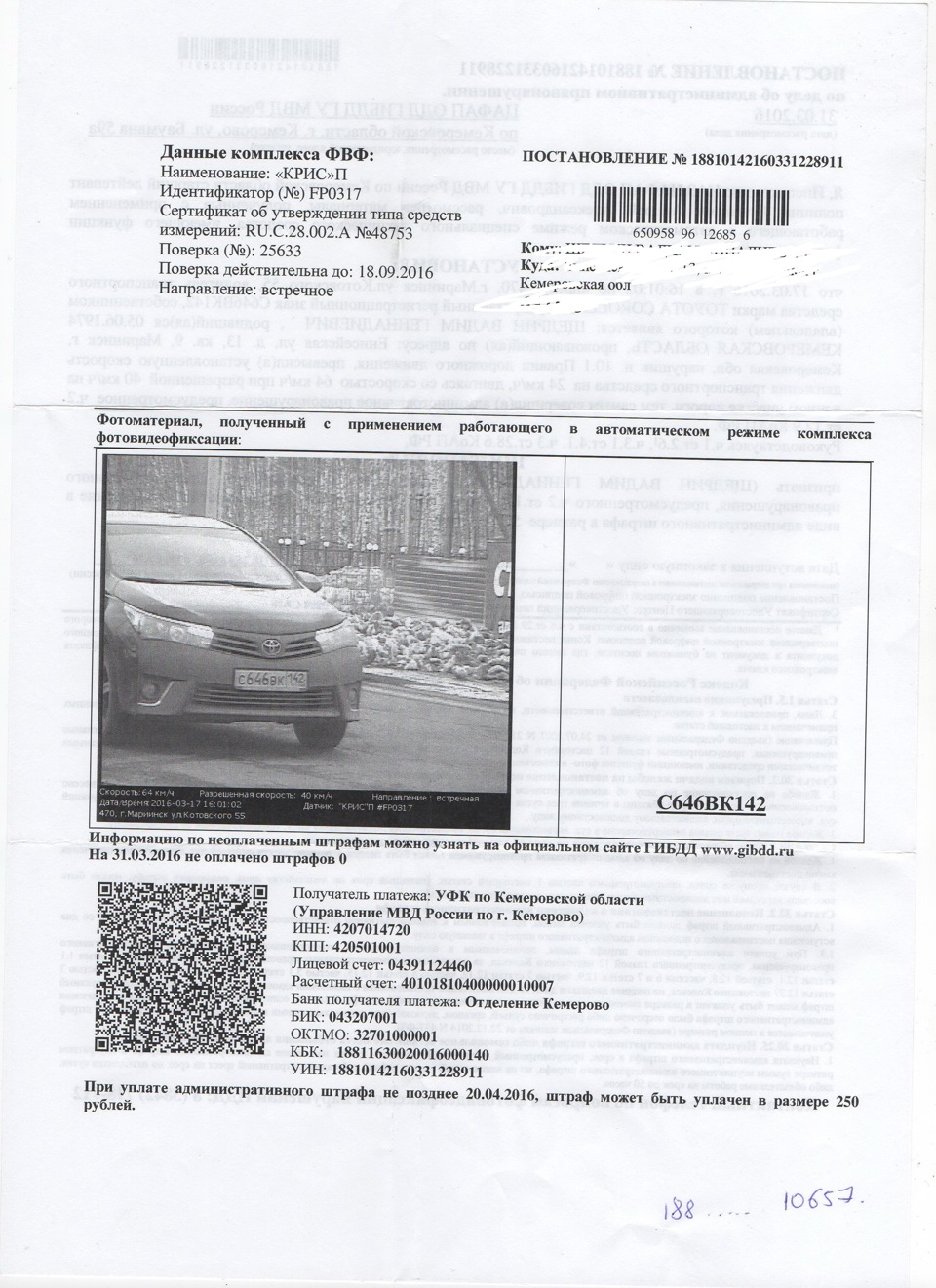 Пришло почтой, письмо счастья за превышение скорости зафиксировано в автоматическом режиме, но всё бы ничего, если бы через пару дней не пришло ещё одно письмо за то-же самое нарушение, только два разных постановления.Написал претензию-заявление в через сайт ГИБДД, через две недели рассмотрели моё заявление и приняли решение аннулировать одно из двух постановлений, в следствии технического сбоя программного обеспечения ГИБДД. штраф со скидкой вышел 250 рублей.