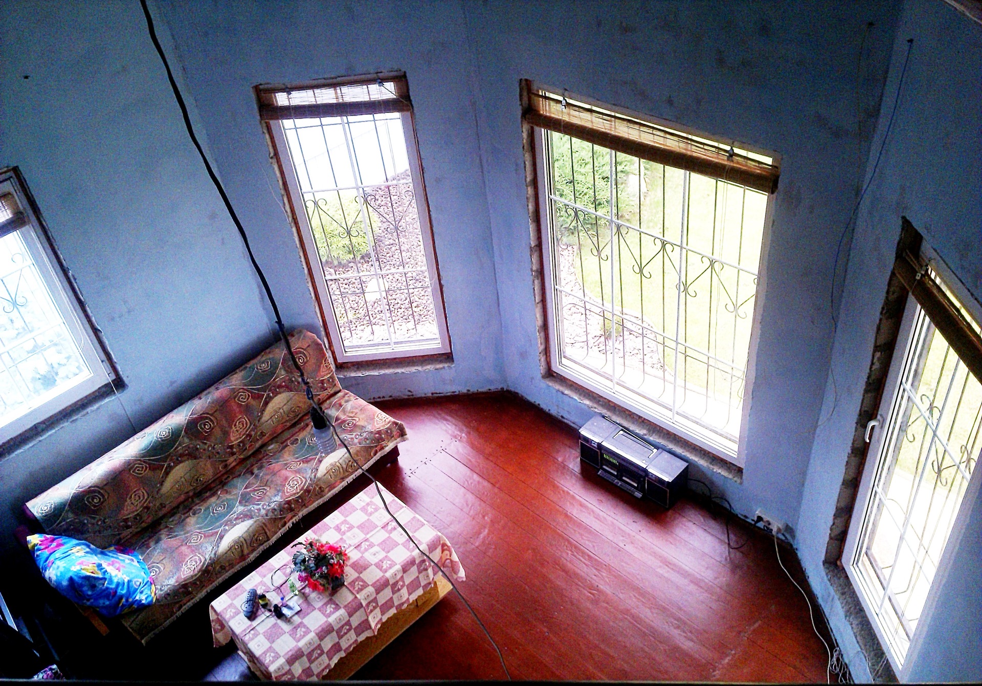 Осталось заделать щели между откосами и стеной, покрасить все деревянные элементы, покрыть стены декор.штукатуркой и много чего еще другого!