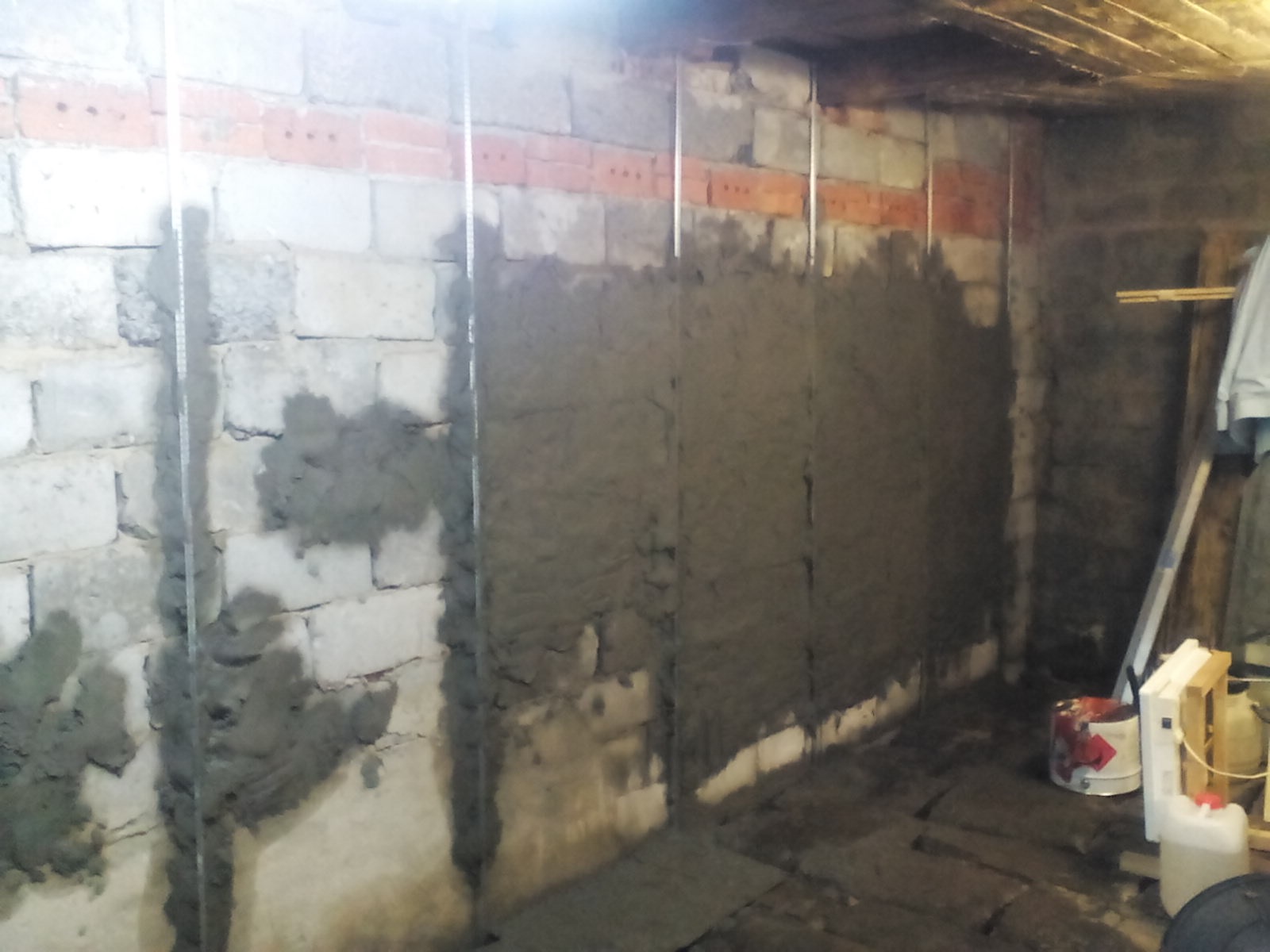 Делам тоже самое. Использовал фасадную штукатурку. Наносил слоем не больше 20 мм чтобы высыхала лучше и покрасил водоэмульсионкой.