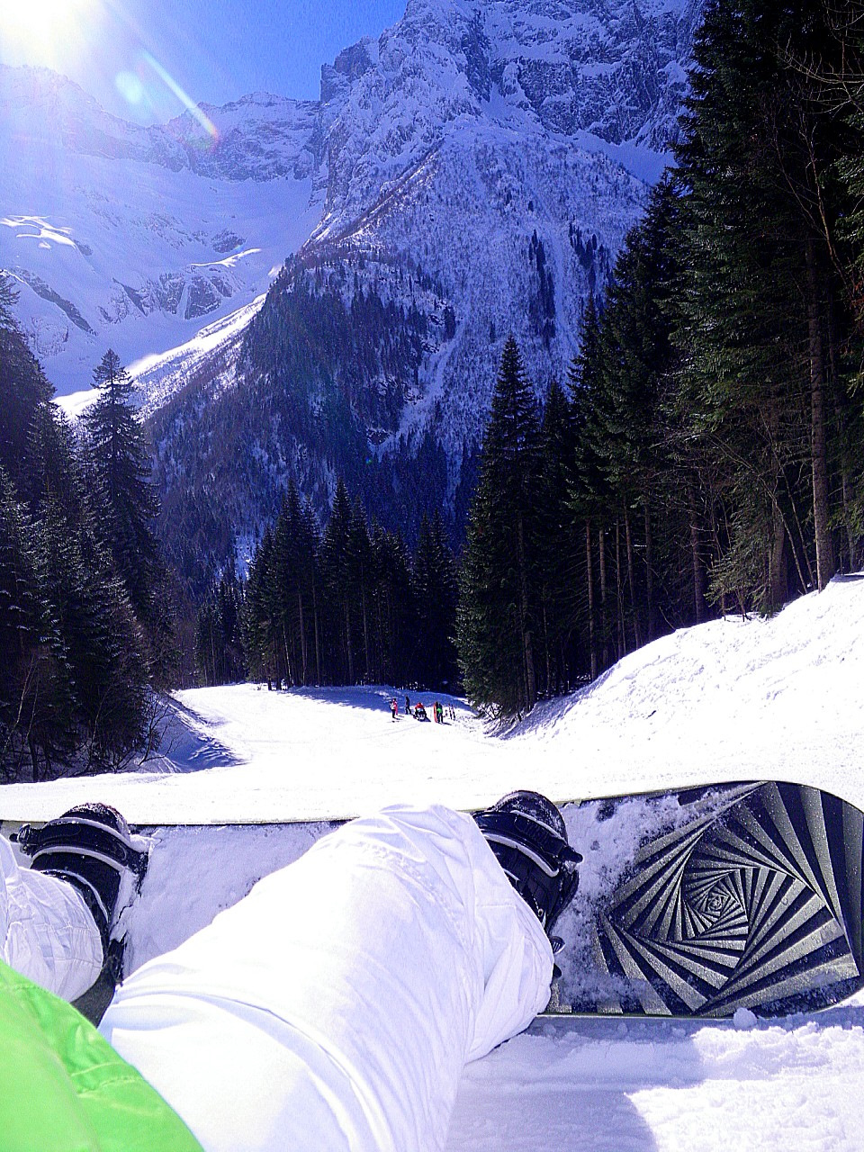 на уровне лесной трассы-очень плотный лес и слишком крутой уклон(я в первый день ломился через лес более 1 часа и очень устал). Внизу есть бесплатный лягушатник с бугелем-даже не тратте время…