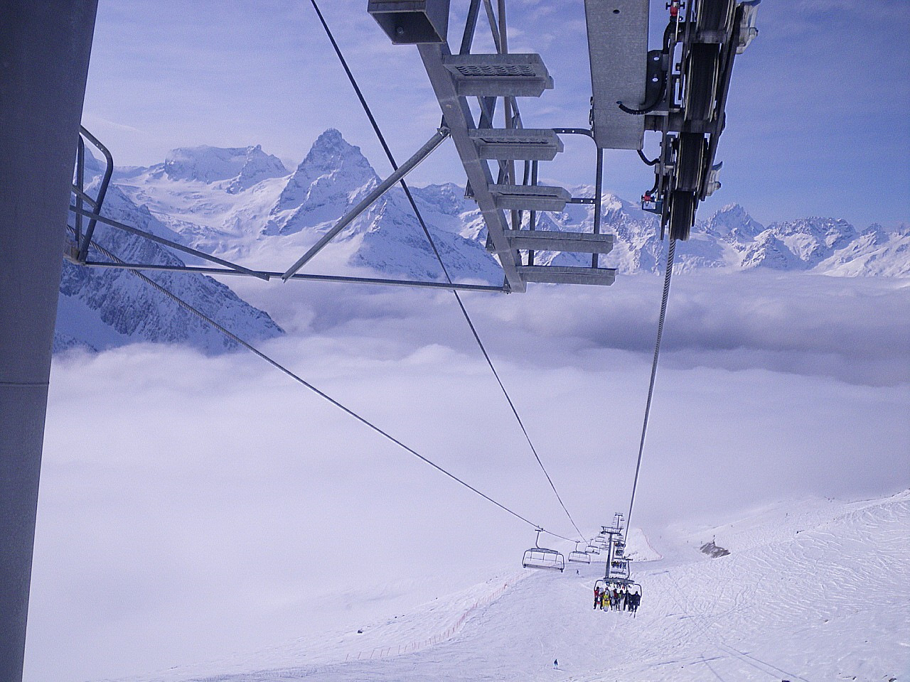 и потом снова сходится на высоте 2200 и далее лесная. При уверенном умении катания с верху до низу все проезжается за мин.20. Верхняя трасса зачастую выше облаков,
