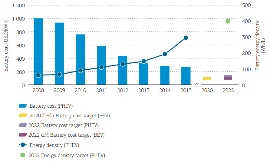 Авторы исследования Международного энергетического агентства пророчат светлое будущее экологически чистому транспорту на электрической тяге, и особенно компании Tesla Motors. В ближайшие годы эксперты ожидают дальнейшее снижение цен и улучшение технических характеристик автомобильных батарей: «Технологический прогресс, научно-технические исследования и переход на массовое производство привели к быстрому падению цен и улучшениям производительности в последнее десятилетие и обещают продолжить постепенное снижение цен в ближайшем будущем. Стоимость батареи для гибридных электромобилей PHEV (plug-in hybrid electric vehicle), по данным Министерства энергетики США, снизилась с 1000 долларов за киловатт-час в 2008 году до 268 долларов за киловатт-час в 2015 году, что соответствует уменьшению цены на 73%».