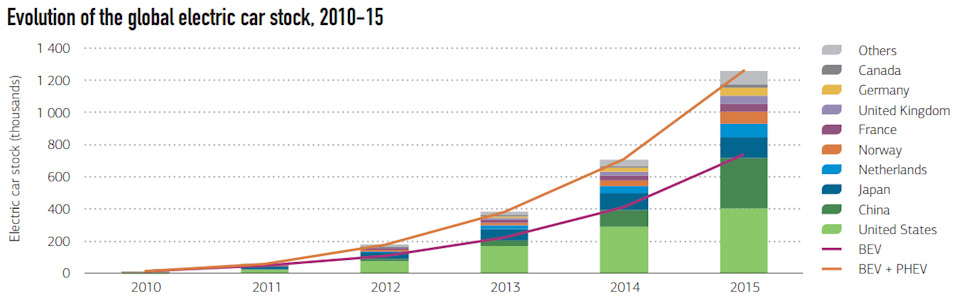 Тем не менее, миссия Tesla Motors постепенно воплощается в жизнь. Согласно последнему отчёту Международного энергетического агентства, продажи электромобилей стремительно растут. В 2015 году по всему миру было продано более 550 000 штук (+70%), так что общее количество электромобилей на дорогах выросло до 1,25 млн.