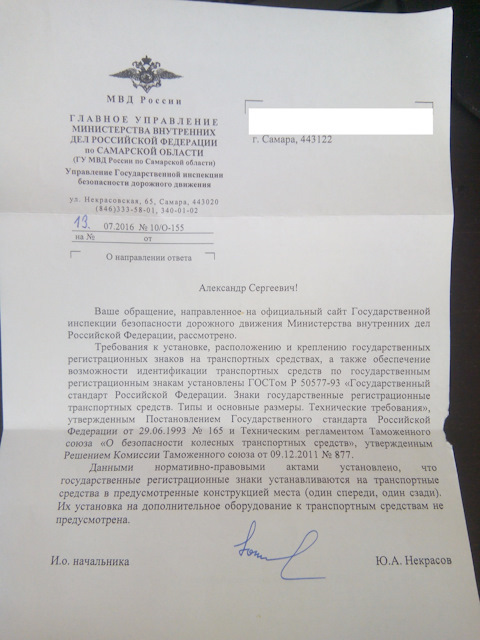 Так же как и слов о переносе ГРЗ на другие места, не предусмотренные заводом изготовителем!