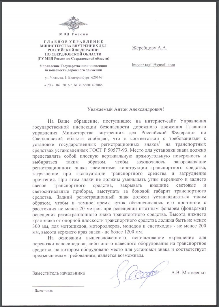 Получаю много вопросов по велокреплению и законности установки номера с машины на само крепление. Надо сказать в МВД творится полнейший бардак. Ответы по этому поводу шлют кто какие может. Хотя возить вот так велосипеды например по Европе — можно спокойно. Почему ни кто не рассматривал такой закон в России — не понятно. Люди до сих пор живут по гостам Совка.
