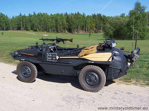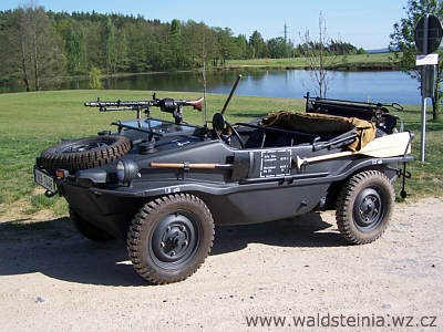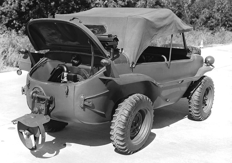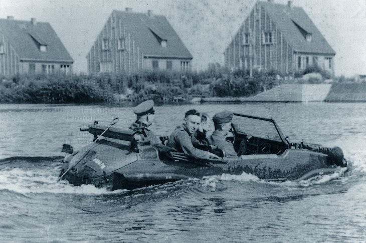 Привод на все колеса, абсолютно плоское дно и небольшой вес позволяли выбираться из водоемов в самых неожиданных местах, а если амфибия все же застревала, ее можно было запросто вынести на руках, благо весила она всего ничего. В конструктивном плане KdF-166 оказался настолько удачным, что его с 1942 года растиражировали в 15 тысячах экземпляров, причем некоторые из них на ходу и поныне.