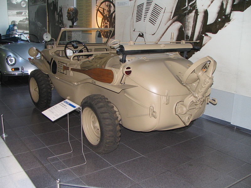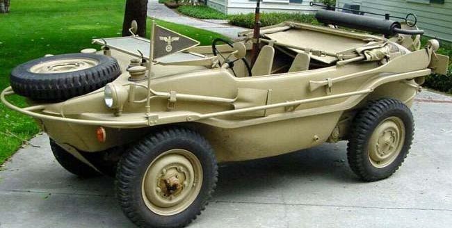 Детище "Фольксвагена", автомобиль-ванночка KdF-166 Schwimmwagen по праву считается одной из первых серийных амфибий в мире. Schwimmwagen в переводе с немецкого — "плавающий автомобиль". А вот аббревиатура KdF принадлежала курировавшей создание автомобиля нацистской спортивно-оздоровительной профсоюзной организации Kraft durch Freude (сила через радость) — немецкому аналогу ДОСААФ. Доподлинно неизвестно, чему тогда так радовались немцы, скорее всего, их вдохновлял тот факт, что амфибия была от и до разработана и построена самим Фердинандом Порше.