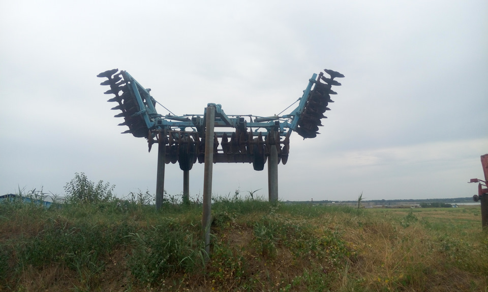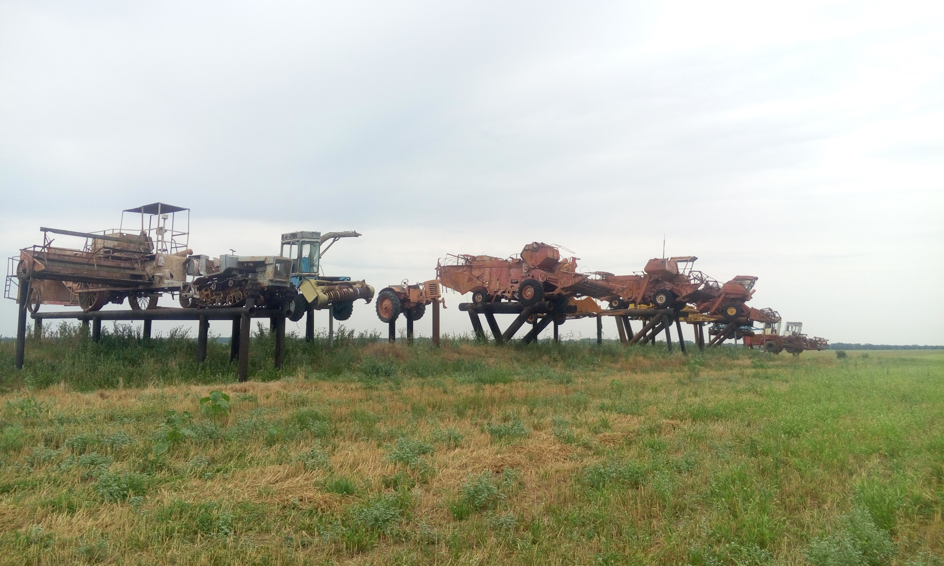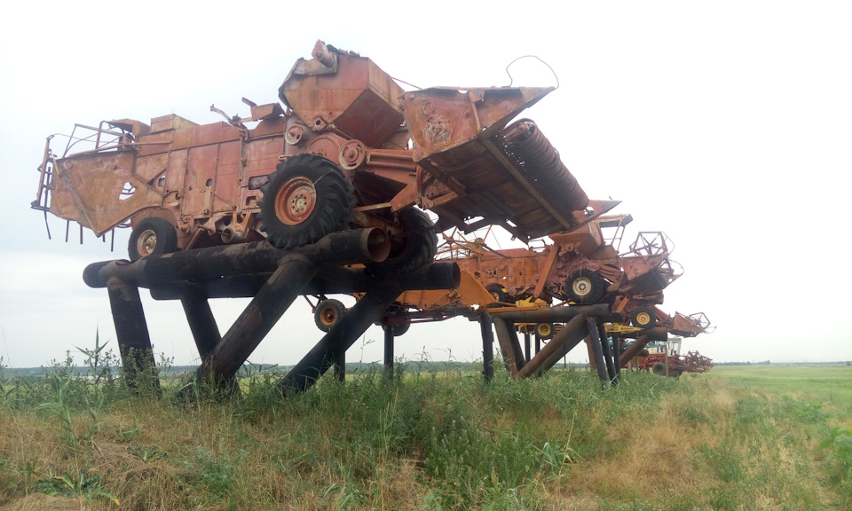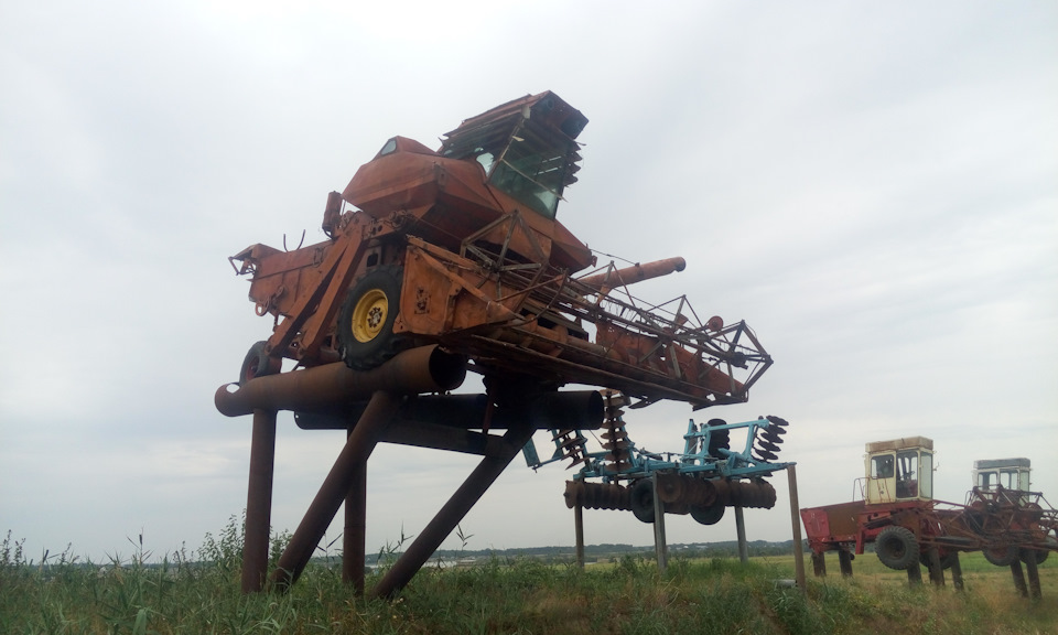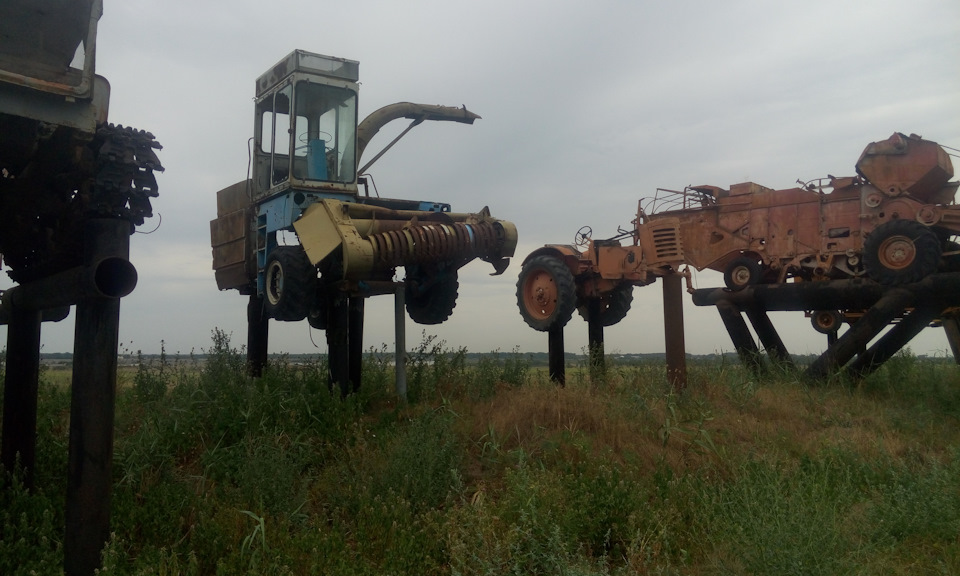 Вот ведь как интересно, старую сельхоз технику как бы увековечили на постаментах !